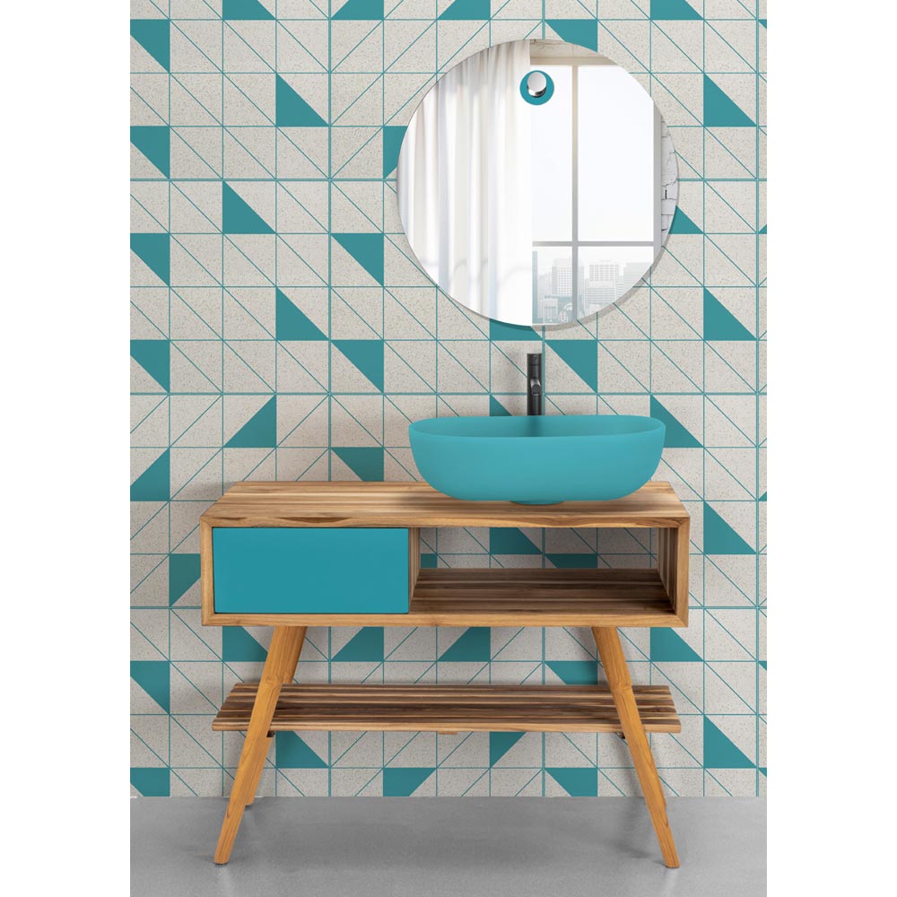 Staande badkamerkast gemaakt van natuurlijk hersteld teakhout met zijlade in blauw mahoniehout , een kleur die verwijst naar rust en sereniteit, die de sensatie creëert van een duik in het blauw van de Sardijnse zee, een emotie die verwijst naar de overweldigende charme van karakter van het achterland. Een opzettelijk grafische esthetiek die nog meer wordt versterkt door de praktische afmetingen ervan, waardoor het perfect is voor het inrichten van kleine ruimtes die een elegante en functionele hoofdrolspeler nodig hebben.
