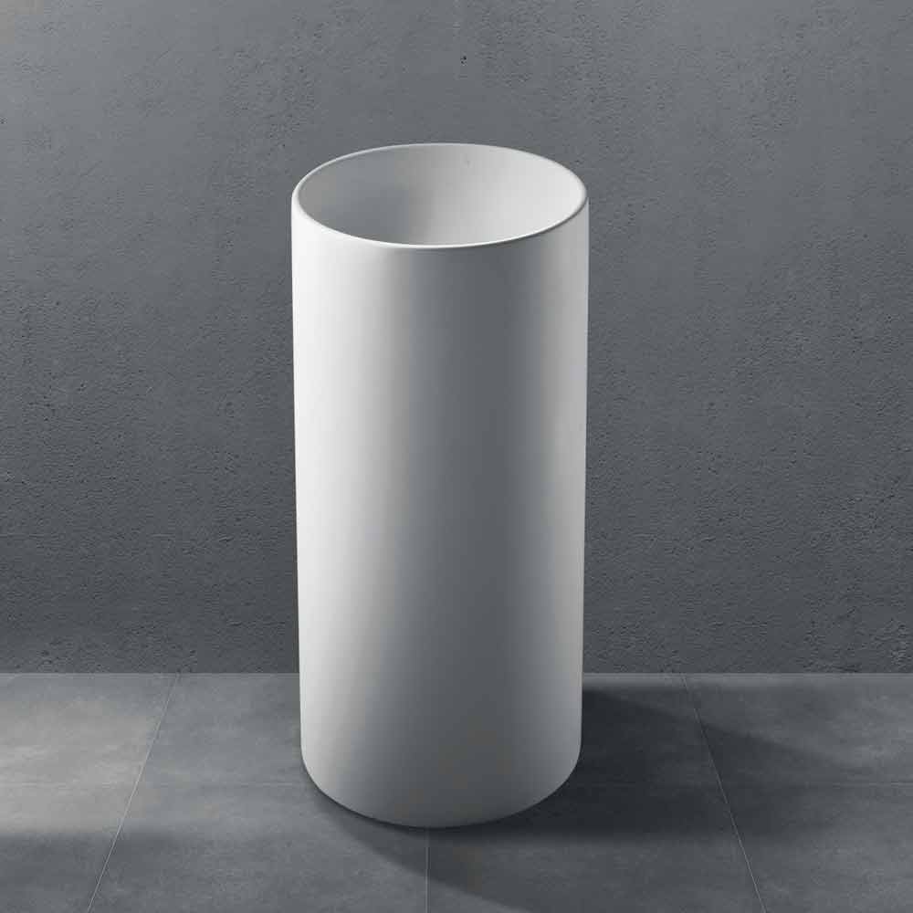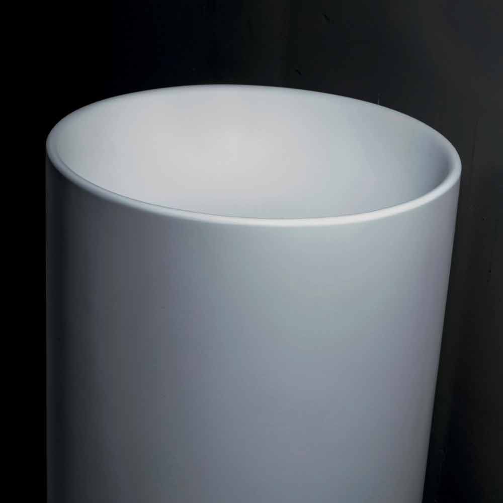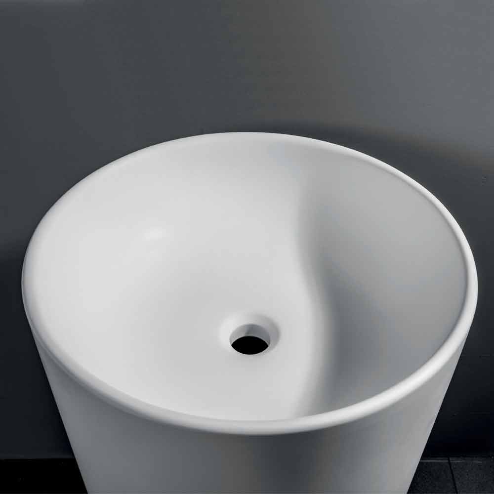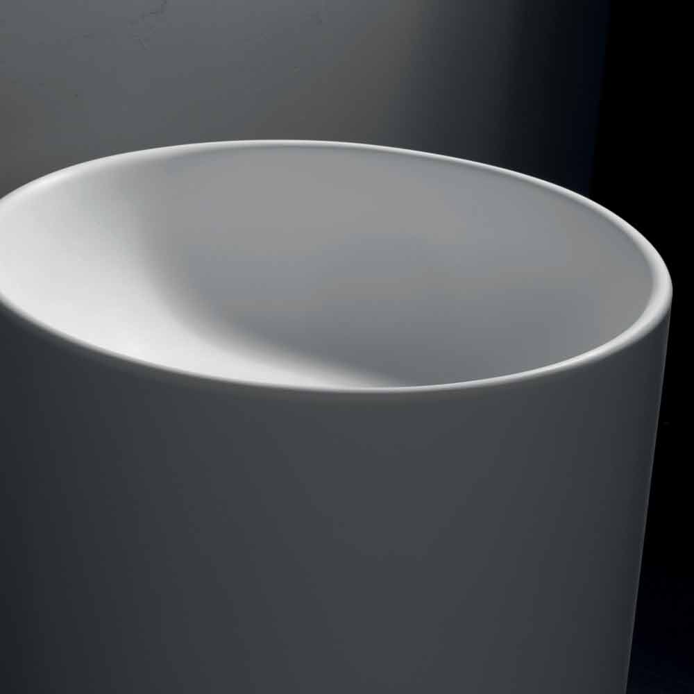 Vrijstaandevrijstaande spoelbak in totaal wit Betrayl® solid surface. Perfecte vormen in absolute zuiverheid. Betracyl® is een extreem hoogwaardig materiaal dat het mogelijk maakt om niet-poreuze spoelbakken te creëren die bestand zijn tegen vlekken en agressieve middelen.