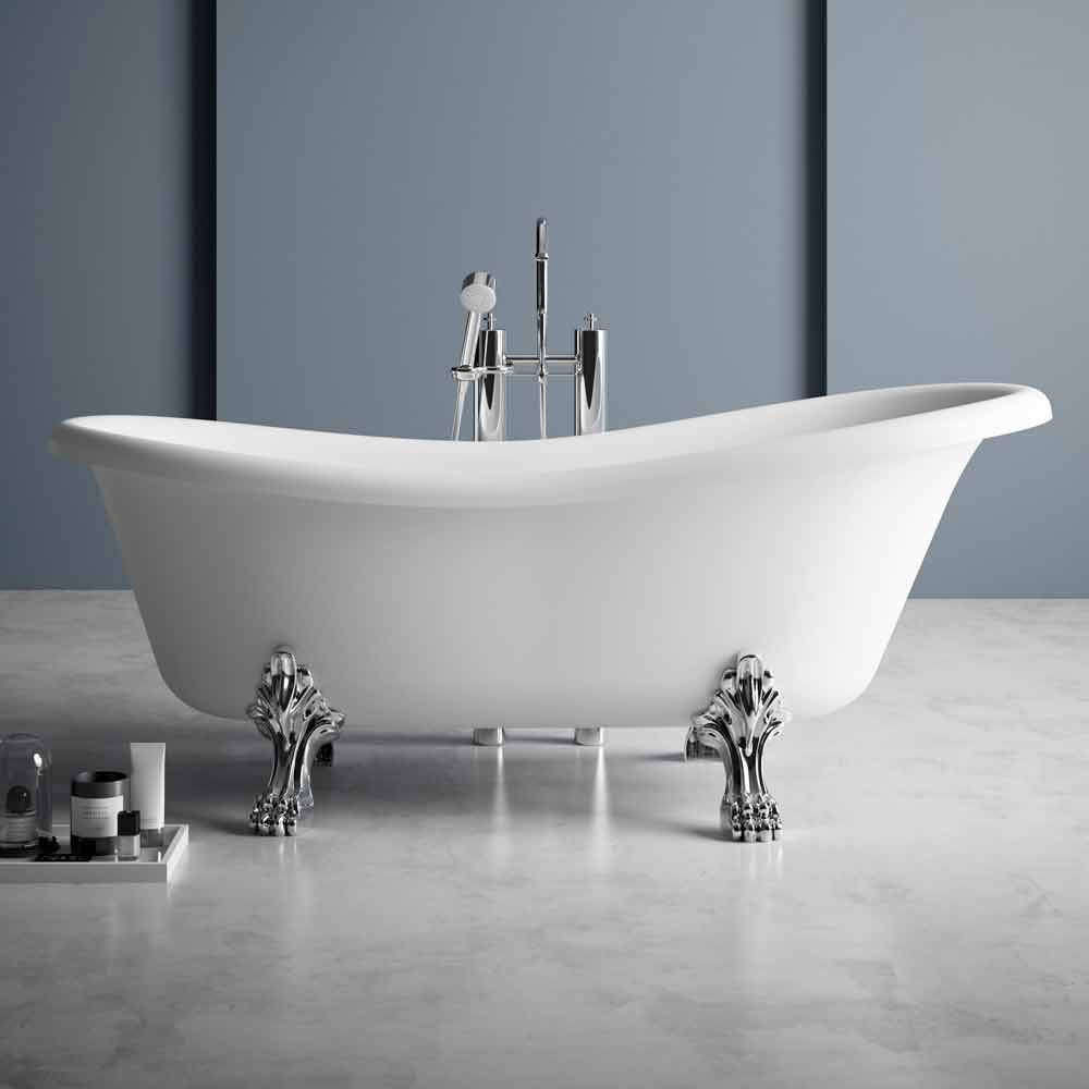 verchroomde voeten in de vorm van leeuwenpoten, die karakter geven.