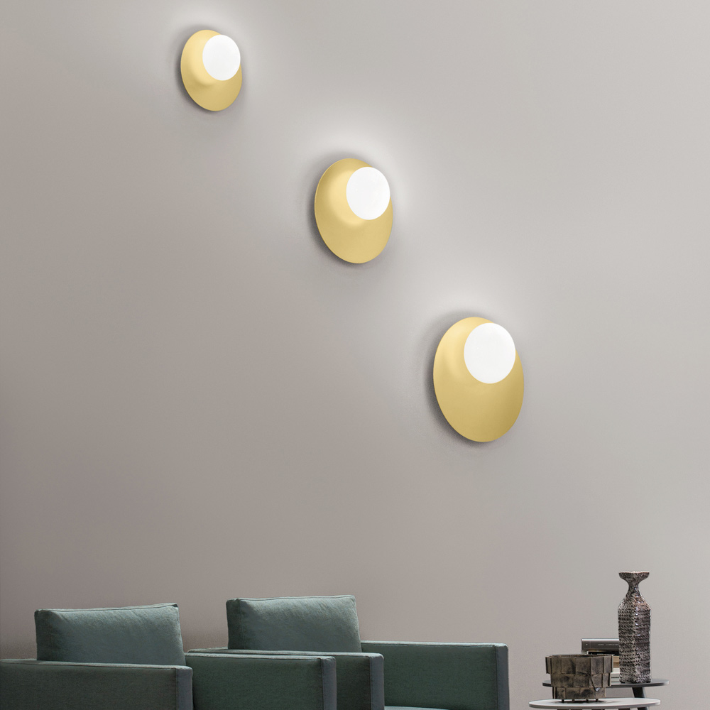 Deze wandlamp is een waar voorbeeld van minimalistisch en elegant design , perfect voor wie zijn ruimte wil verfraaien met strakke lijnen en verfijnde materialen . De ronde metalen structuur omarmt een bolvormige witte glazen diffuser, wat een aangenaam contrast creëert tussen geometrische vormen en zacht licht .