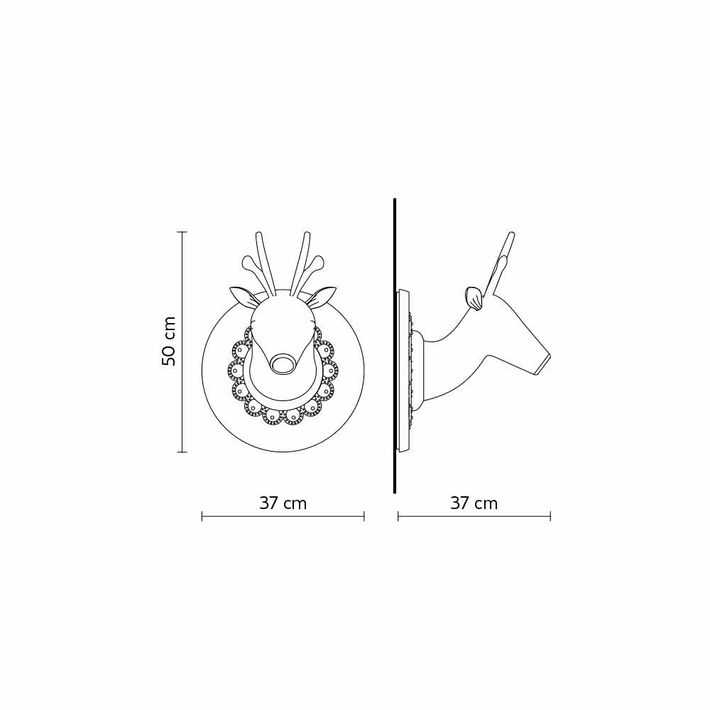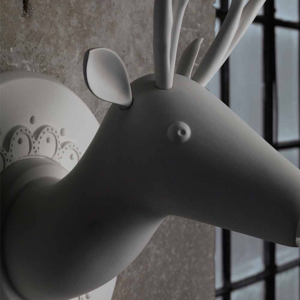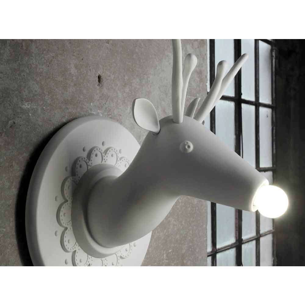 Deze originele en bijzondere wandkandelaar stelt een hert uit de sprookjeswereld voor, want in plaats van de mond vinden we een gloeilamp die de taal van het licht symboliseert die het dier kan spreken, gretig om de authenticiteit en de duizend tinten te benadrukken die karakteriseren de persoonlijkheid van elk, door de weergave van lichtgevende elementen met een uniek en innovatief ontwerp