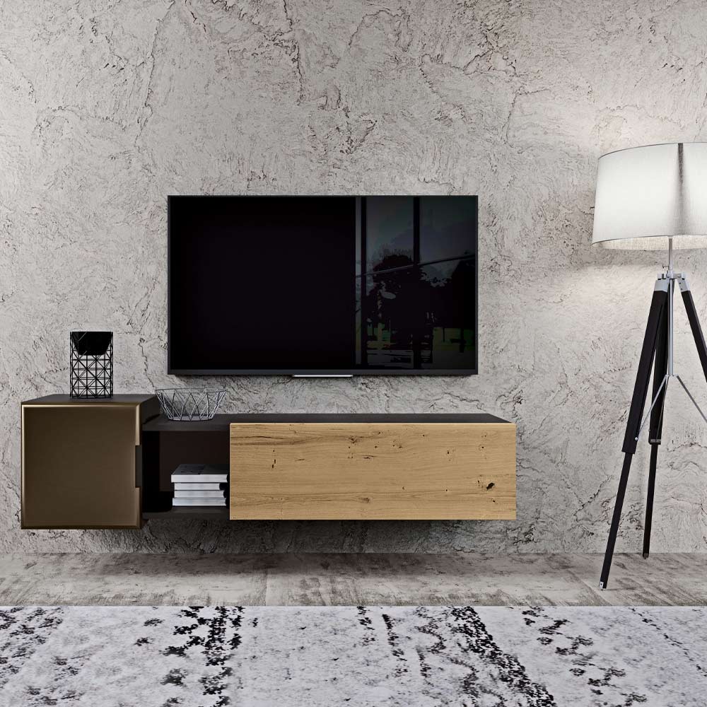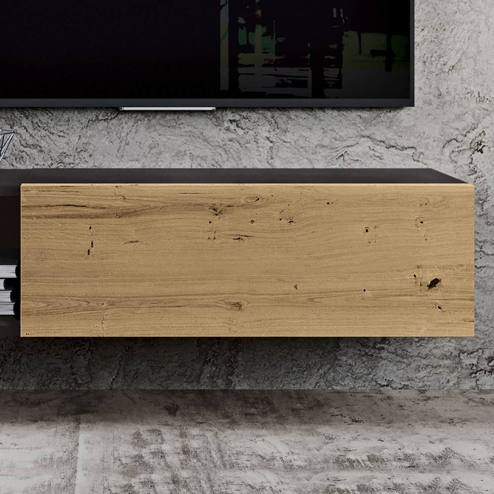- eikenhouten klepwandmeubel, NORDIC KNOTTED OAK + CHARCOAL afwerking, MDF-schaal, geknoopte eiken meubelplaatdeuren