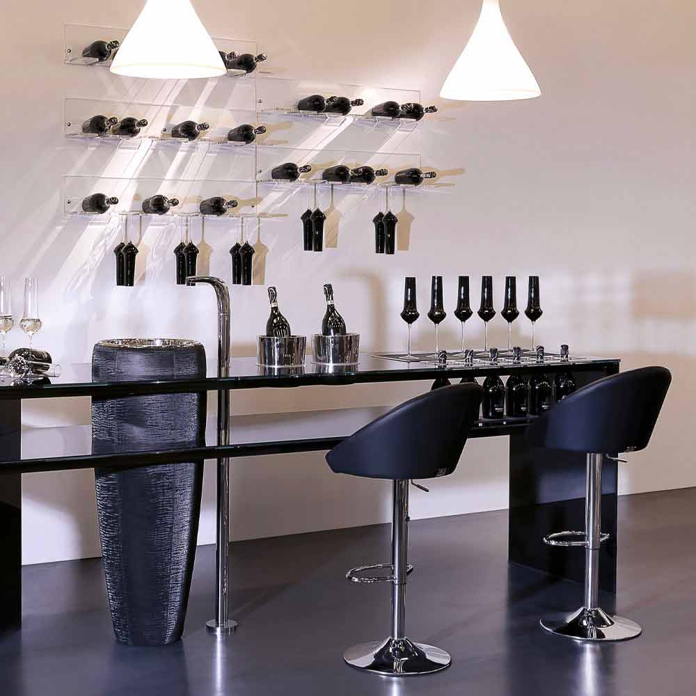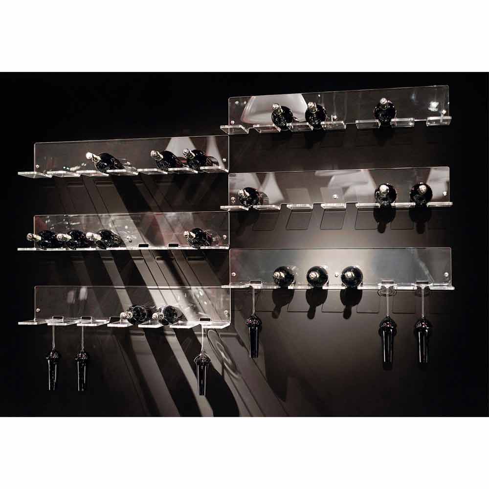 Flessenhouder voor aan de muur voor 6 flessen in transparant plexiglas Made in Italy.