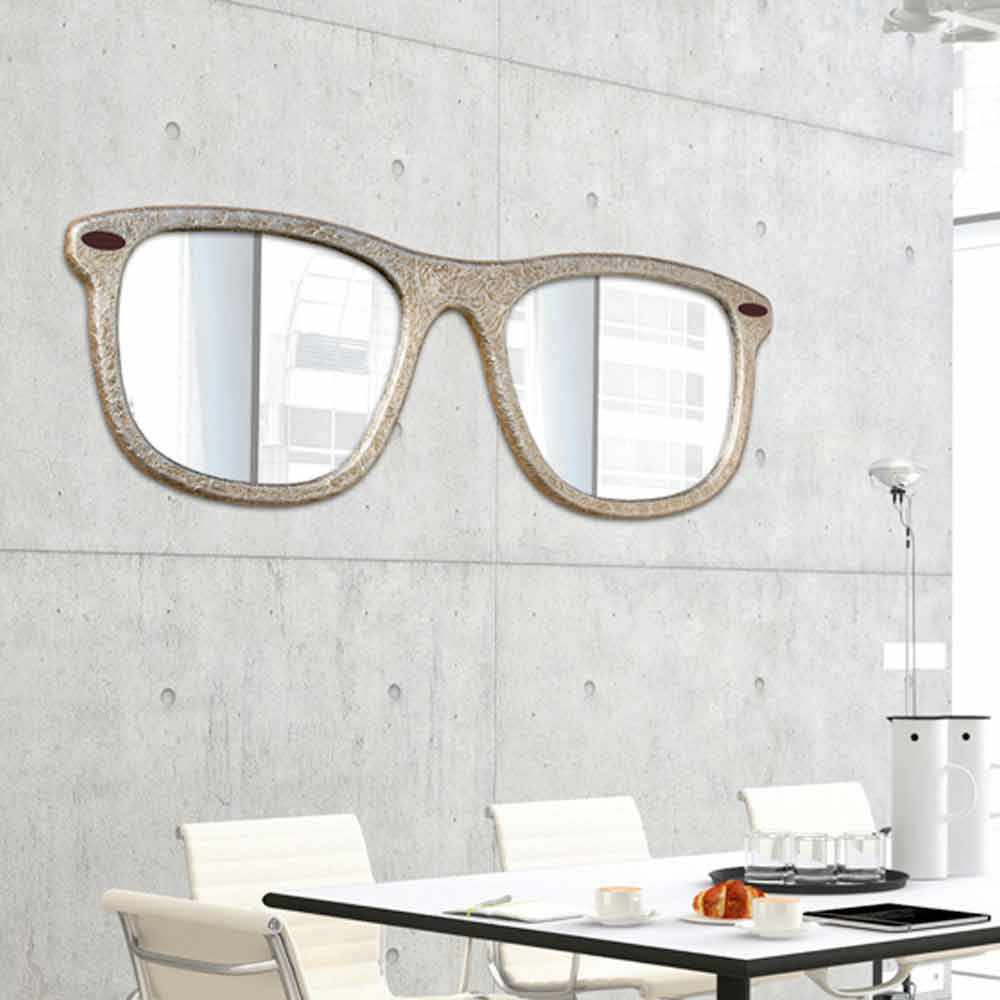 Gekenmerkt door kronkelige lijnen, zacht, eenvoudig en delicaat, kan deze spiegel met een originele vorm die een zonnebril met gespiegelde lenzen herinnert, een vleugje elegantie en creativiteit brengen in elk meubel en elke omgeving waarin hij is geplaatst.