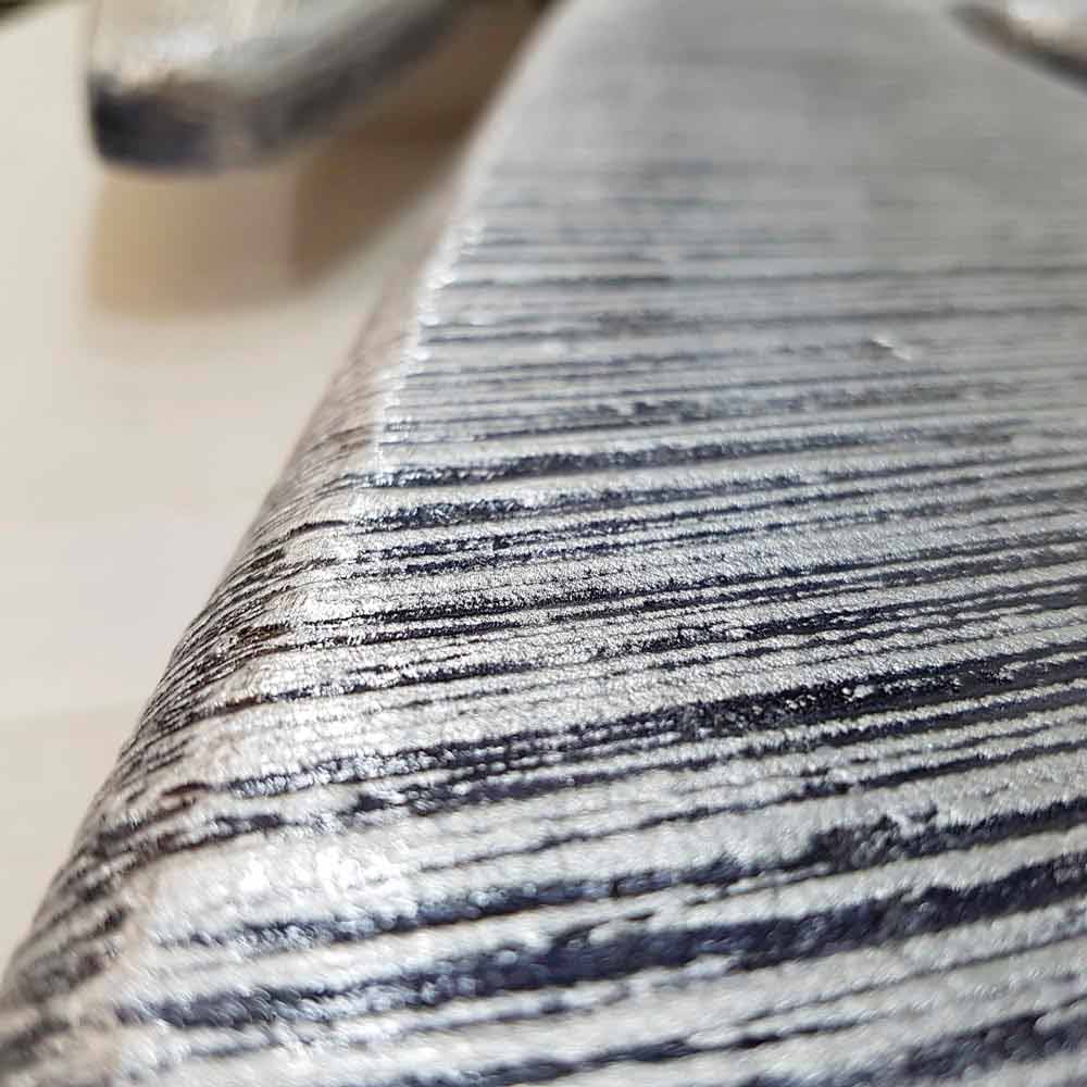 Deze fantastische hanger wordt gekenmerkt door een gegoten Mdf-structuur en met de hand geschilderd in bladzilver op een verhoogd materiaal, in een glanzende afwerking. De structuur doet denken aan tribale afbeeldingen, verrijkt met vier verchroomde knoppen die de hele structuur schitteren.