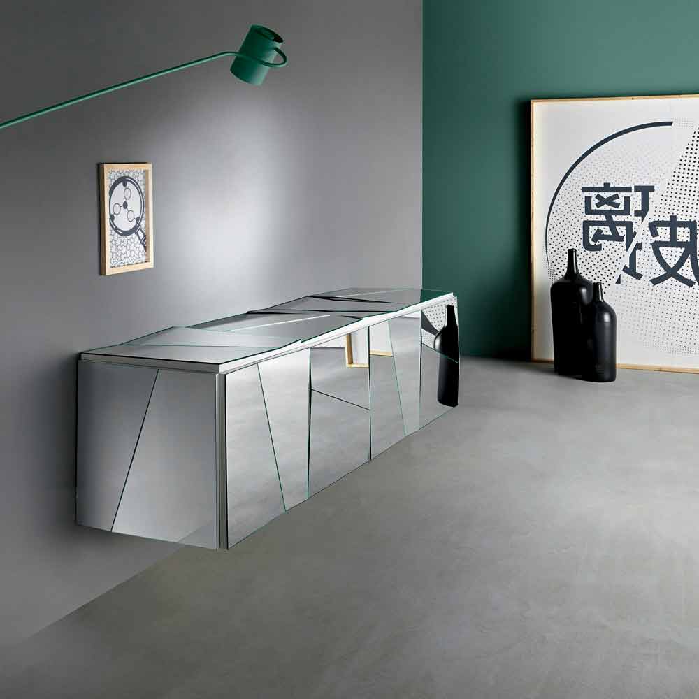 Dit hangende dressoir voor de woonkamer wordt gekenmerkt door zijn originele ontwerp dat de hoofdrolspeler van het huis wordt.