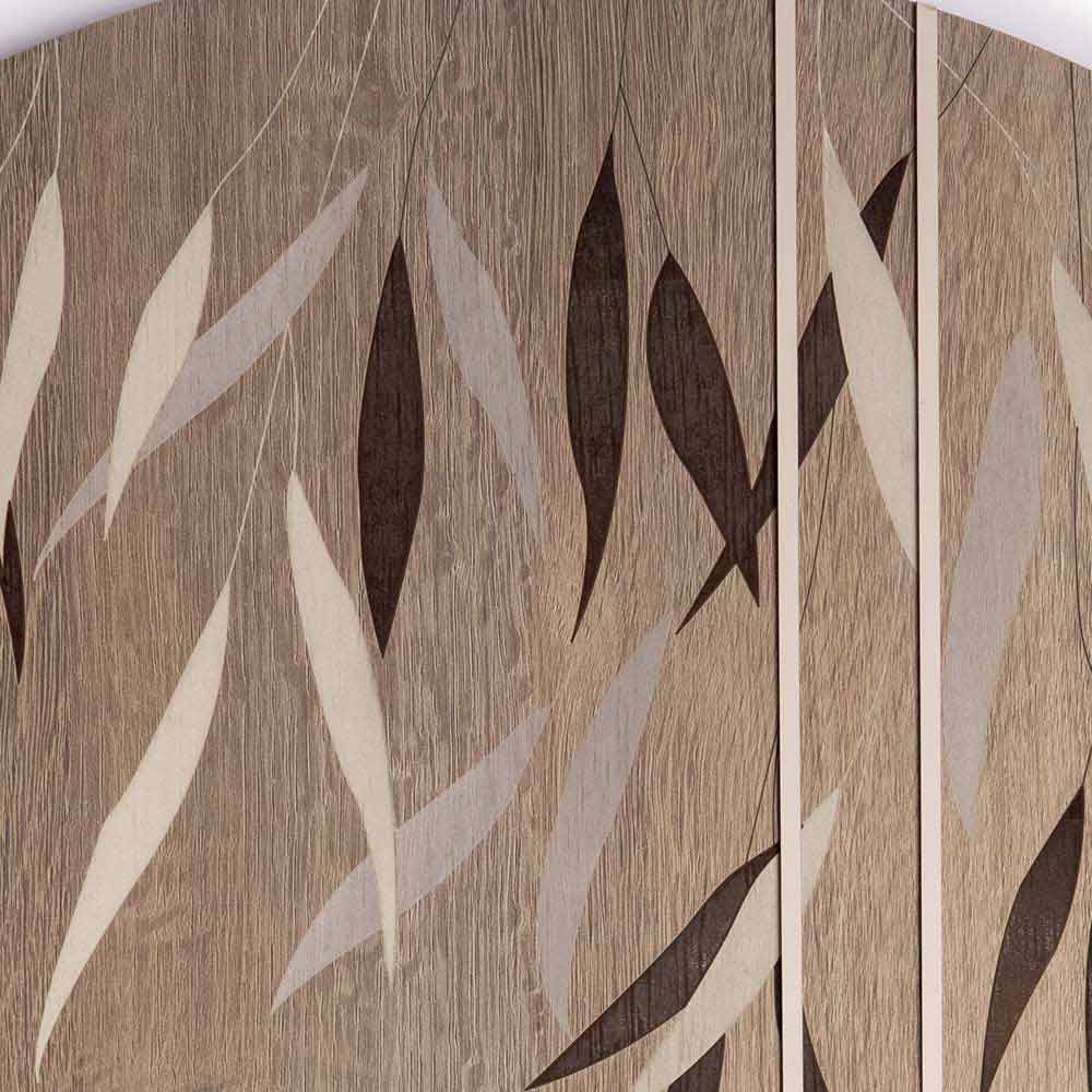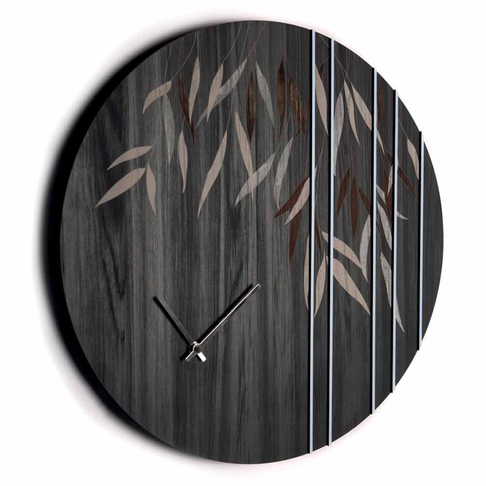 Ronde houten wandklok met lasergravure en gelakte houtdecoraties, made in Italy design.