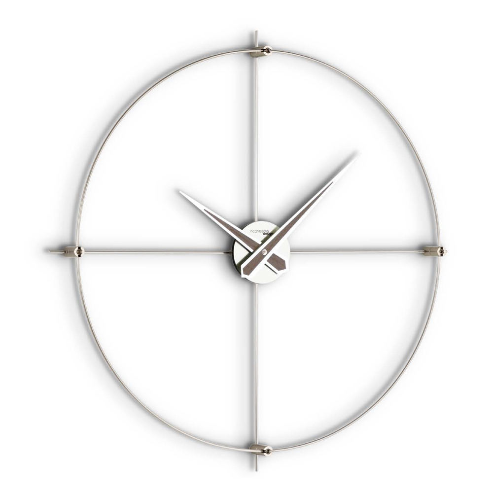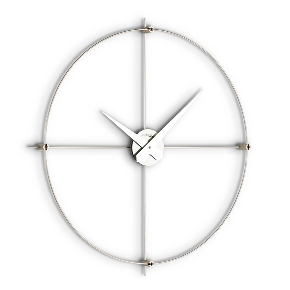 Deze wandklok belichaamt de essentie van het moderne minimalisme . Het essentiële ontwerp, met een stalen structuur , springt in het oog met elegantie en eenvoud. De langwerpige wijzers strekken zich sierlijk uit, raken de randen van de cirkel en bieden een duidelijke en directe aflezing van de tijd .