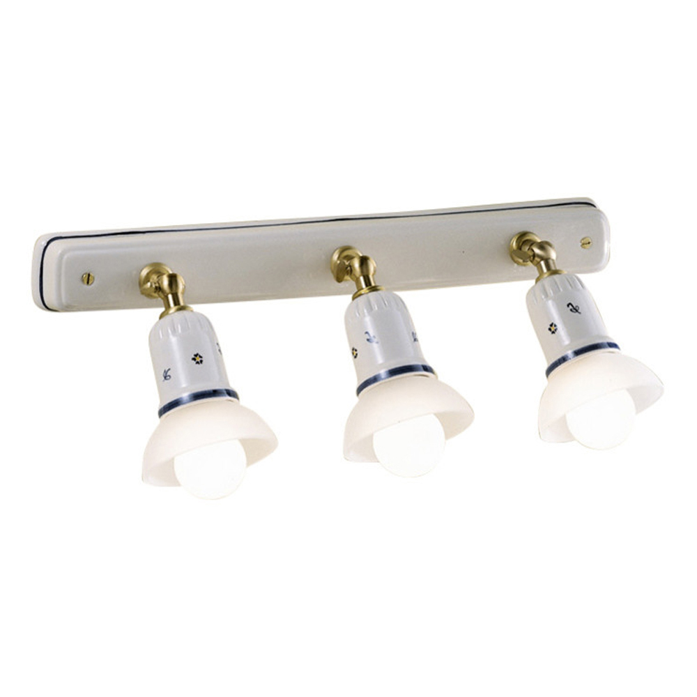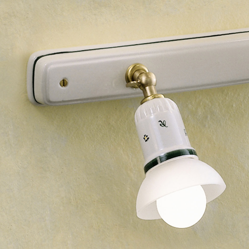 Lineaire wandlamp 2 of 3 lichts in messing en handbeschilderd keramiek, gemaakt in Italië door Ferroluce.
