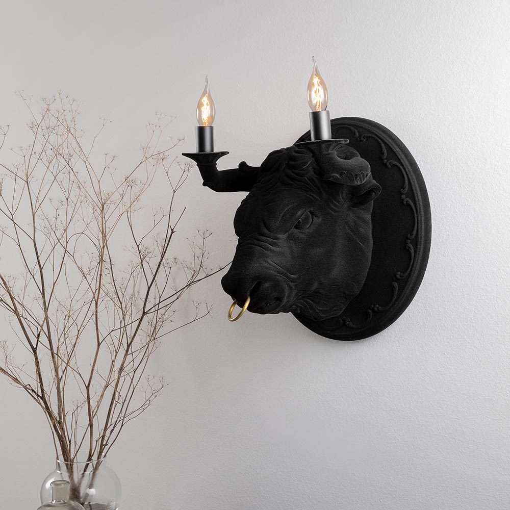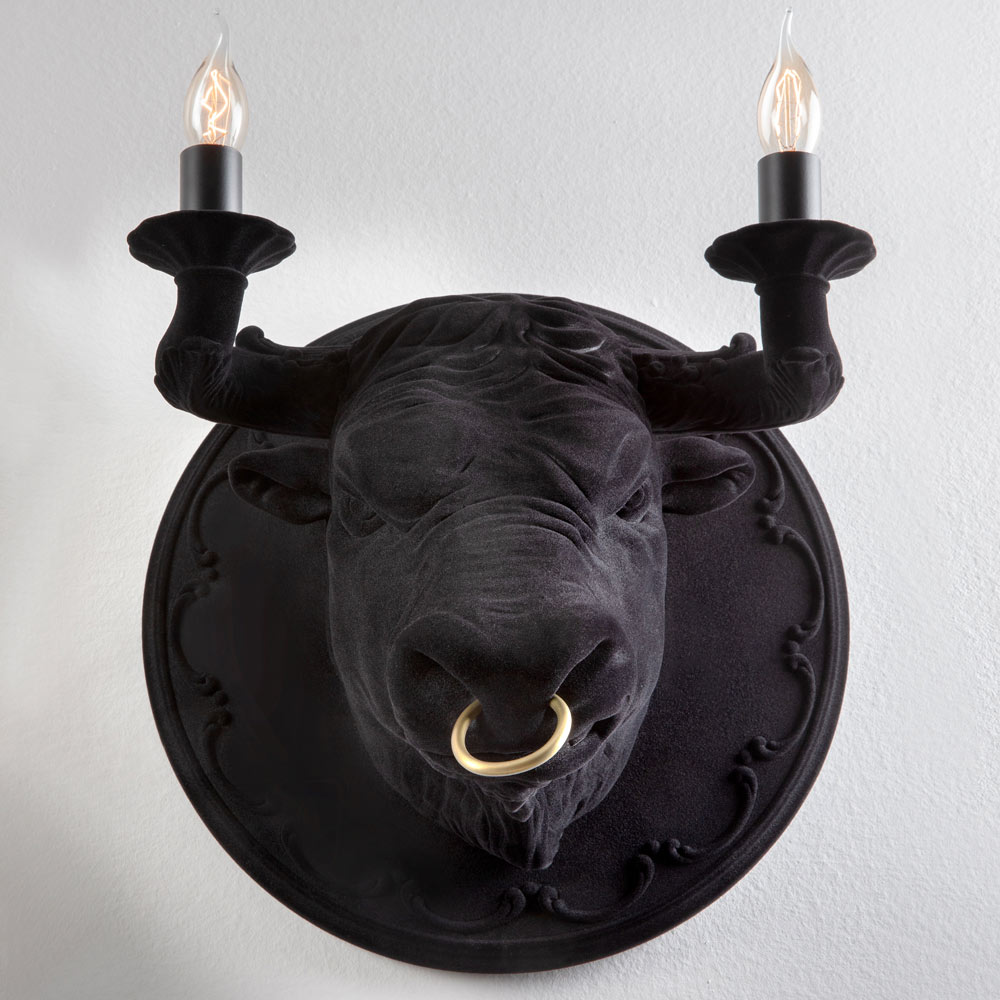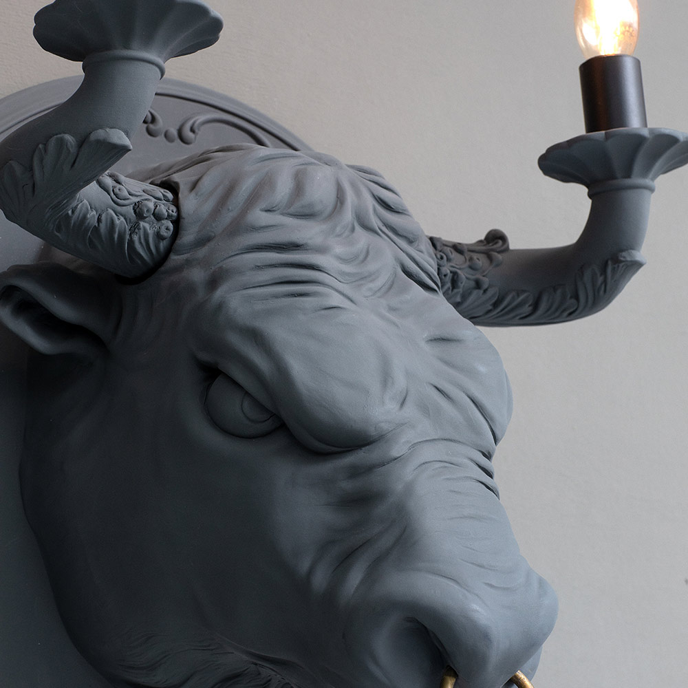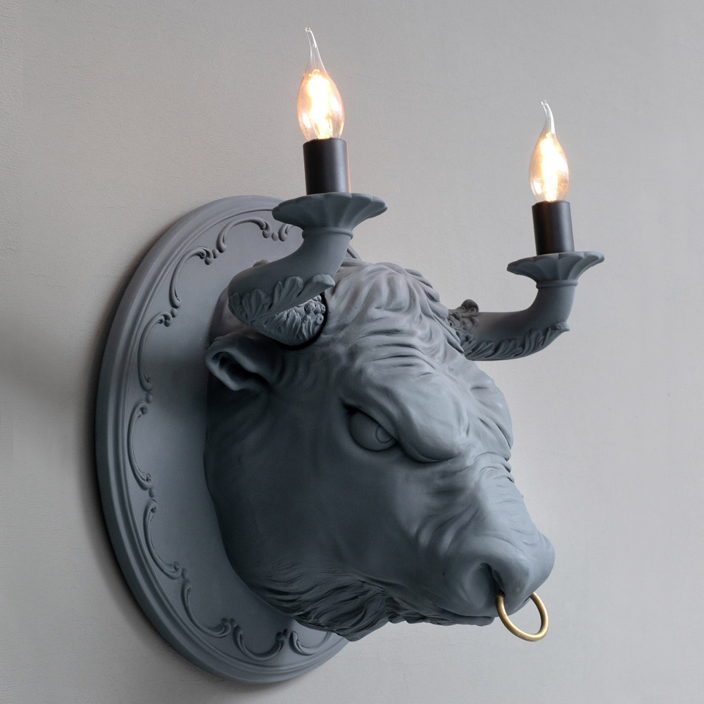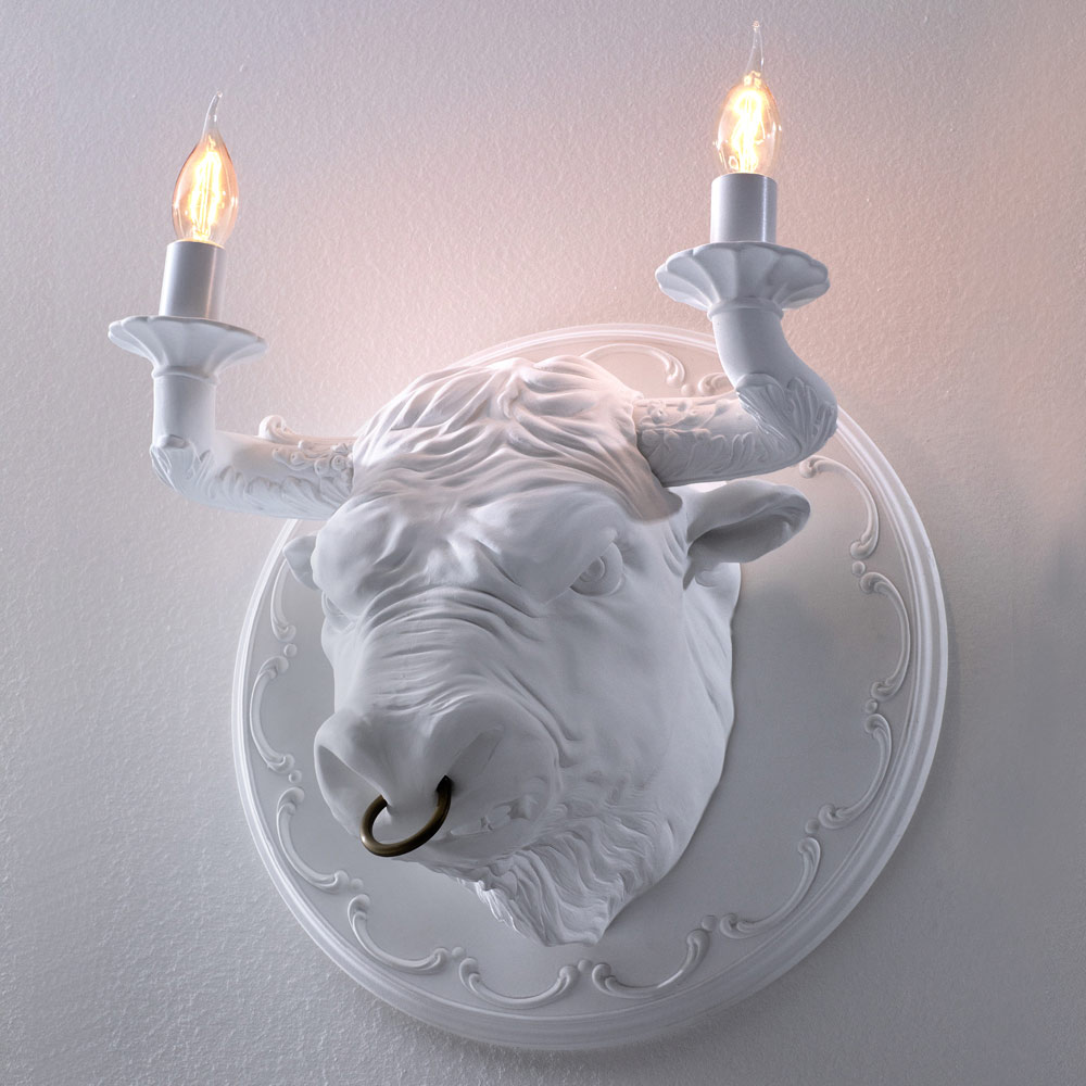 Deze originele en unieke wandlamp heeft een modern en schattig ontwerp in de vorm van een stierenkop , compleet met een neusring en hoorns voor verlichting, voor een lichte en verfijnde geest.