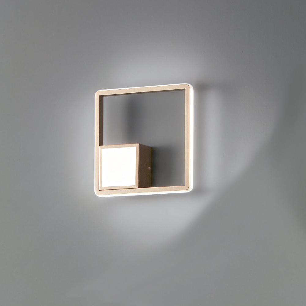 vierkante lijnen , bedacht en ontworpen om huishoudelijke ruimtes zoals ingangen, gangen, slaapkamers, woonruimtes of keukens op een exclusieve en elegante manier te verlichten en in te richten. De verfijnde gouden afwerking onderstreept het