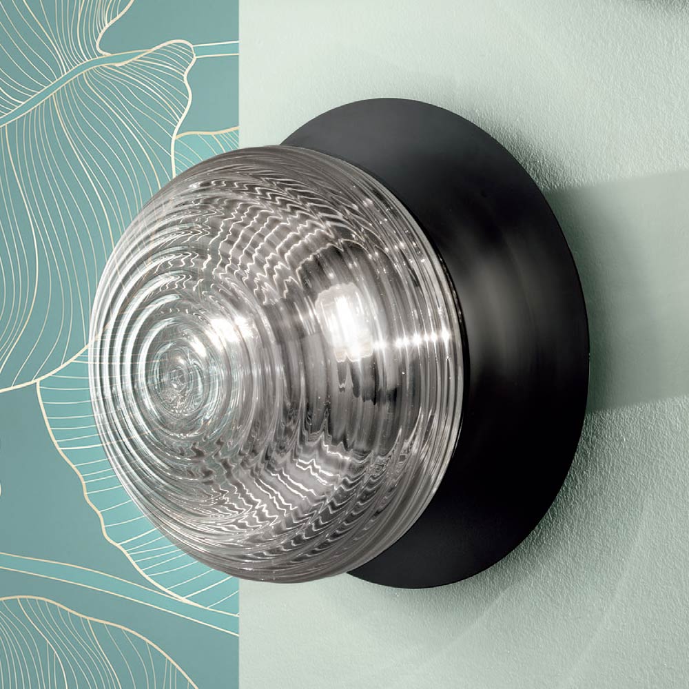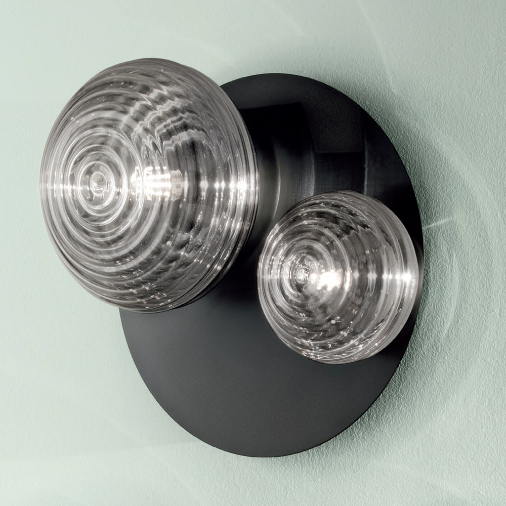 belangrijk visueel effect creëren. De prachtige combinaties van voorgestelde afwerkingen completeren de uiteindelijke esthetiek van het product en geven het een uniek en verfijnd tintje dankzij de perfecte combinatie tussen de moderniteit van het metaal en de elegantie van het geblazen glas. Door haar vorm kan ze ook als praktische wandlamp aan de muur worden geïnstalleerd, waardoor ze nog functioneler wordt en haar waarde en waarde verhoogt.