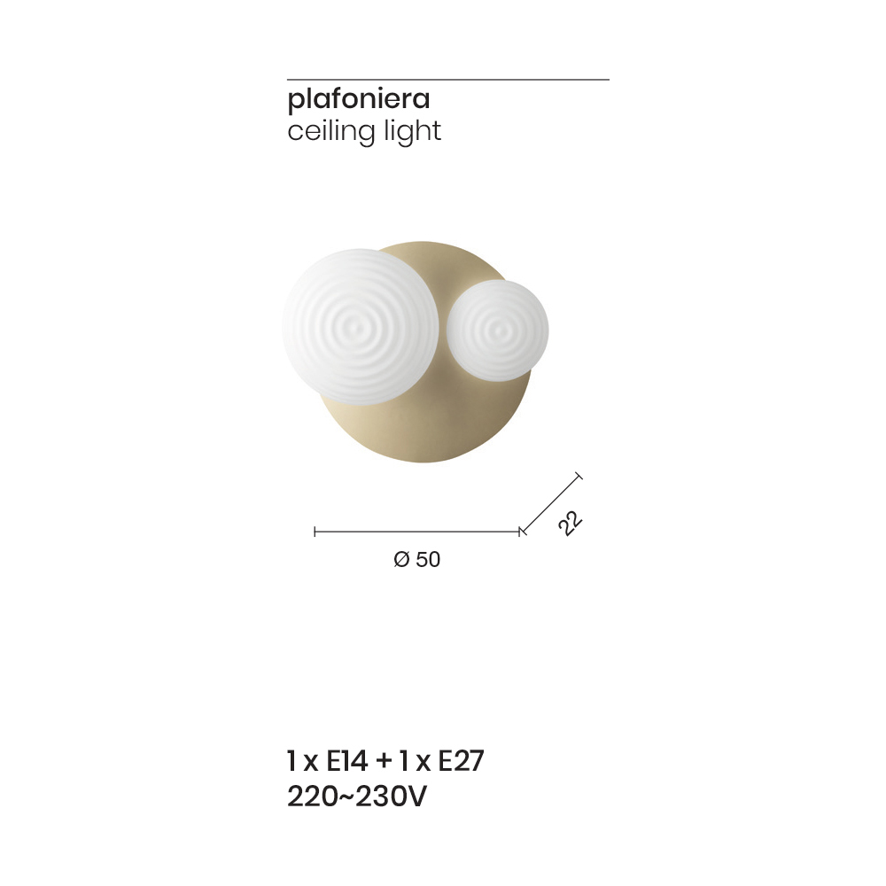 - diameter 50 x P 22 cm (1x E14 + 1x E27 220-230V);