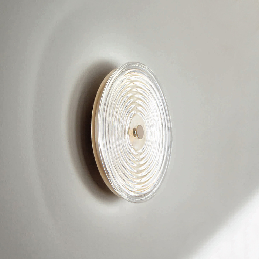 goudkleurig geverfd metaal, glas versierd met concentrische lijnen met
