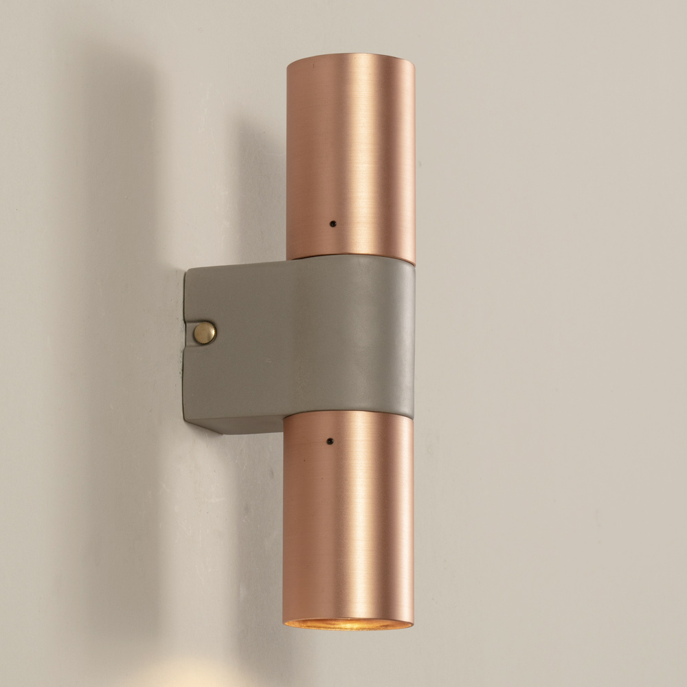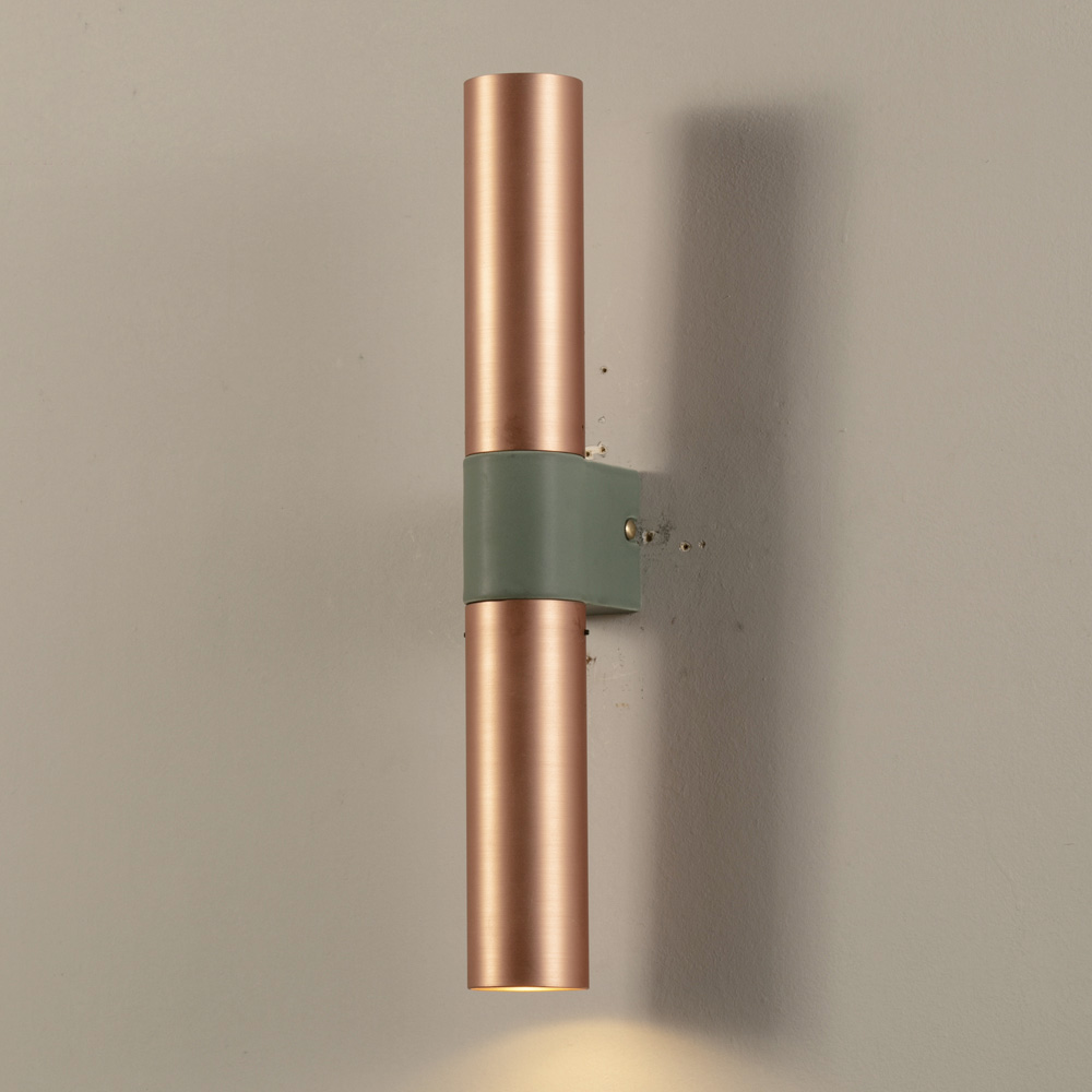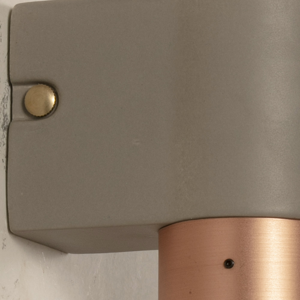 Handgemaakte wandlamp van geglazuurd keramiek en koper Made in Italy.