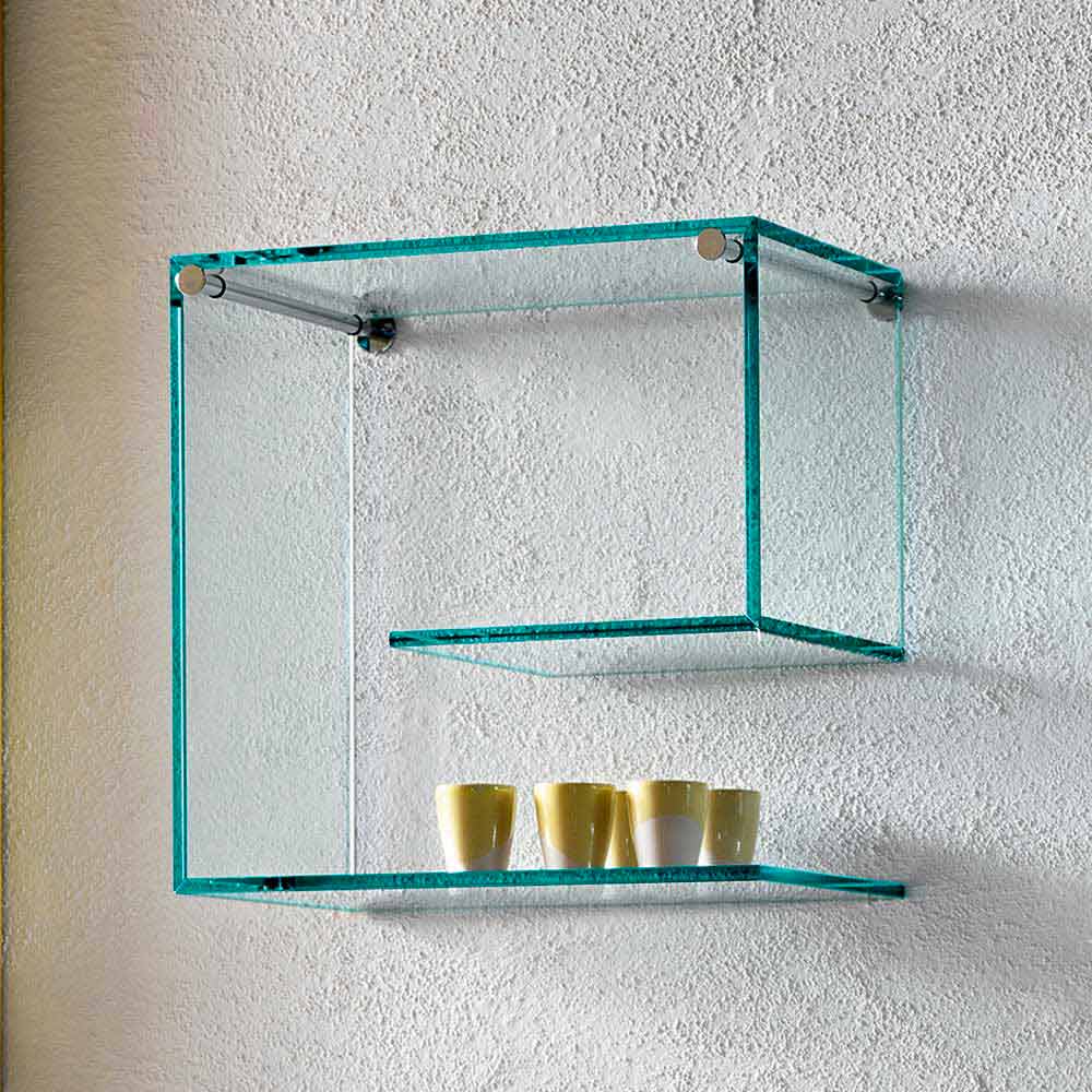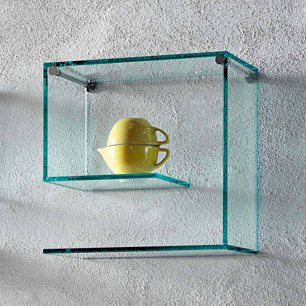 Dit paar wandplanken wordt gekenmerkt door zijn veelzijdige en geometrische ontwerp, volledig gemaakt van 10 mm dik floatglas in de transparante afwerking.