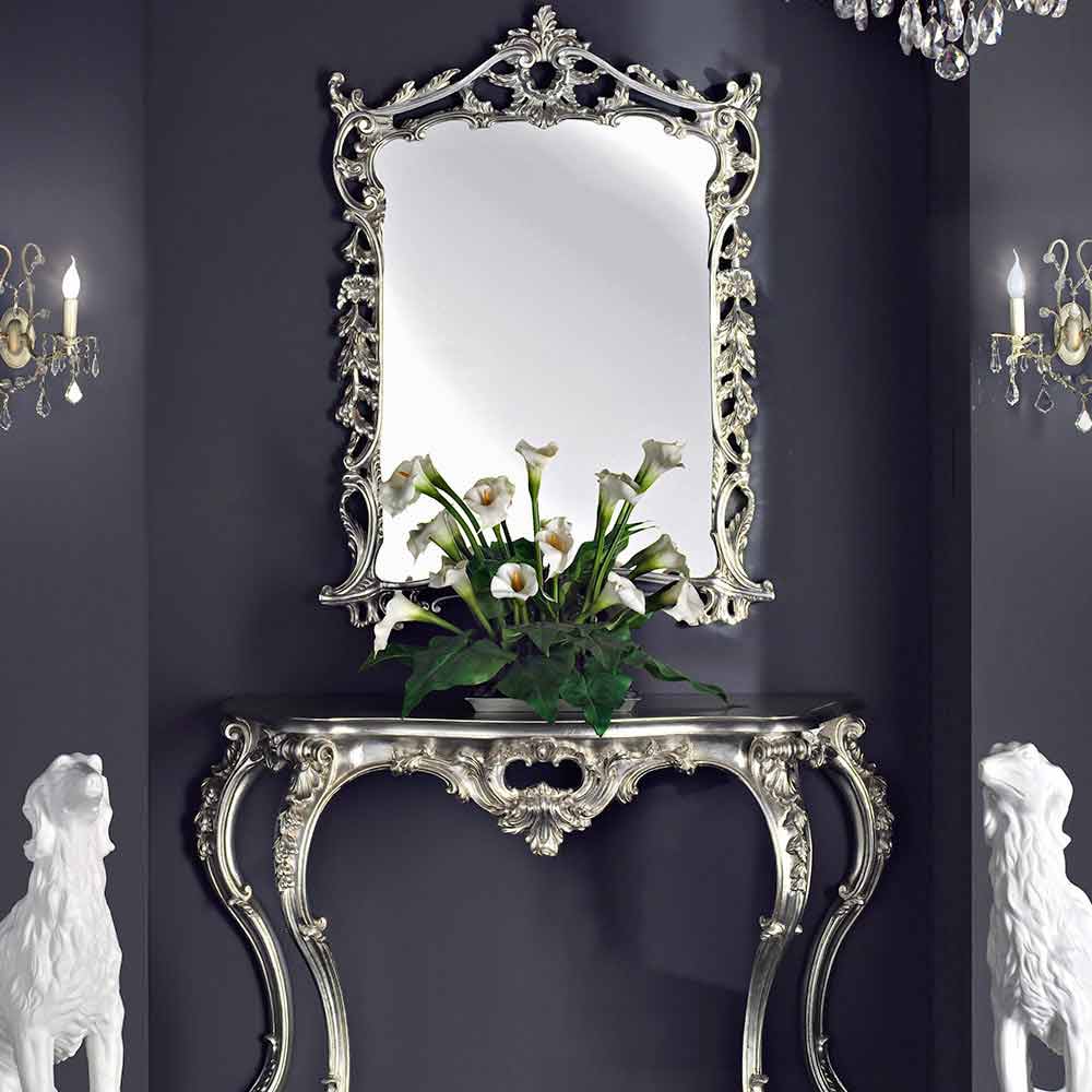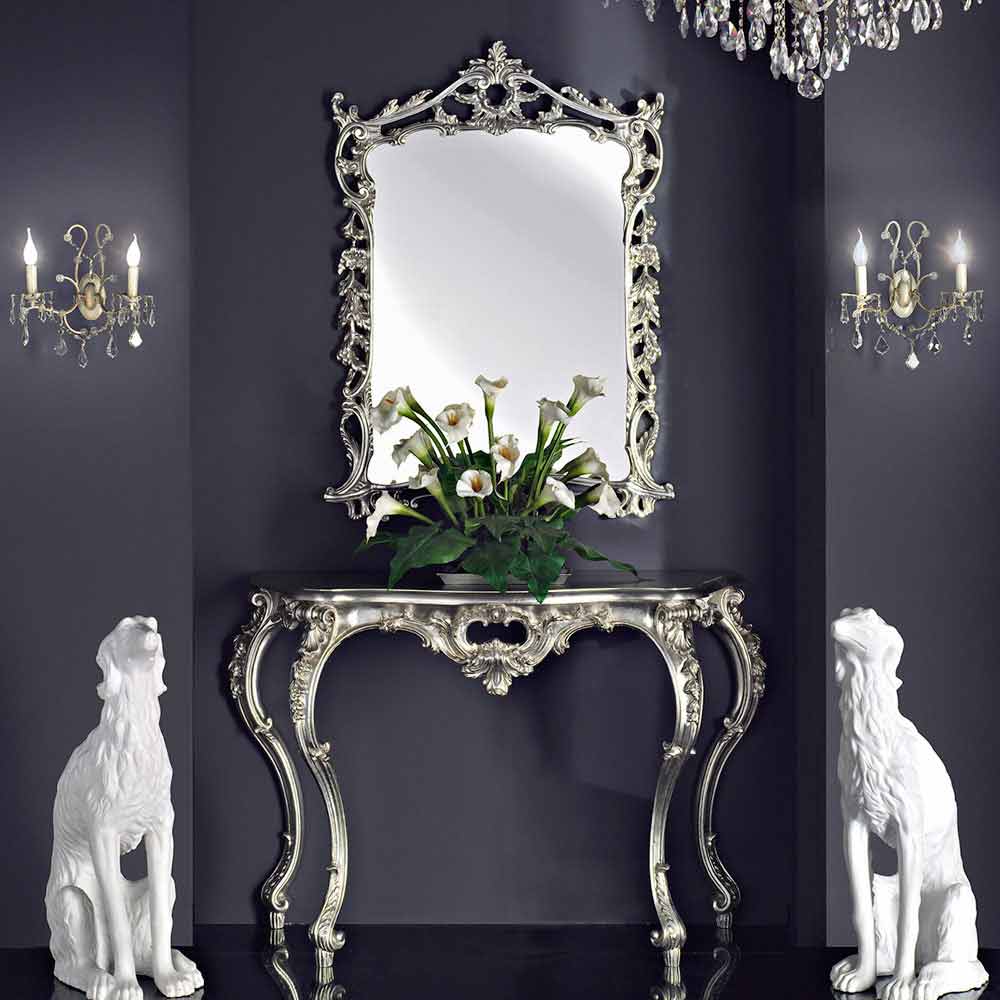 De consoletafel, met zijn golvende lijnen en uitgebreide details, is een triomf van vakmanschap en biedt niet alleen een plek om kunst of vazen met verse bloemen tentoon te stellen, maar ook een elegante ruimte voor uw dagelijkse spullen.