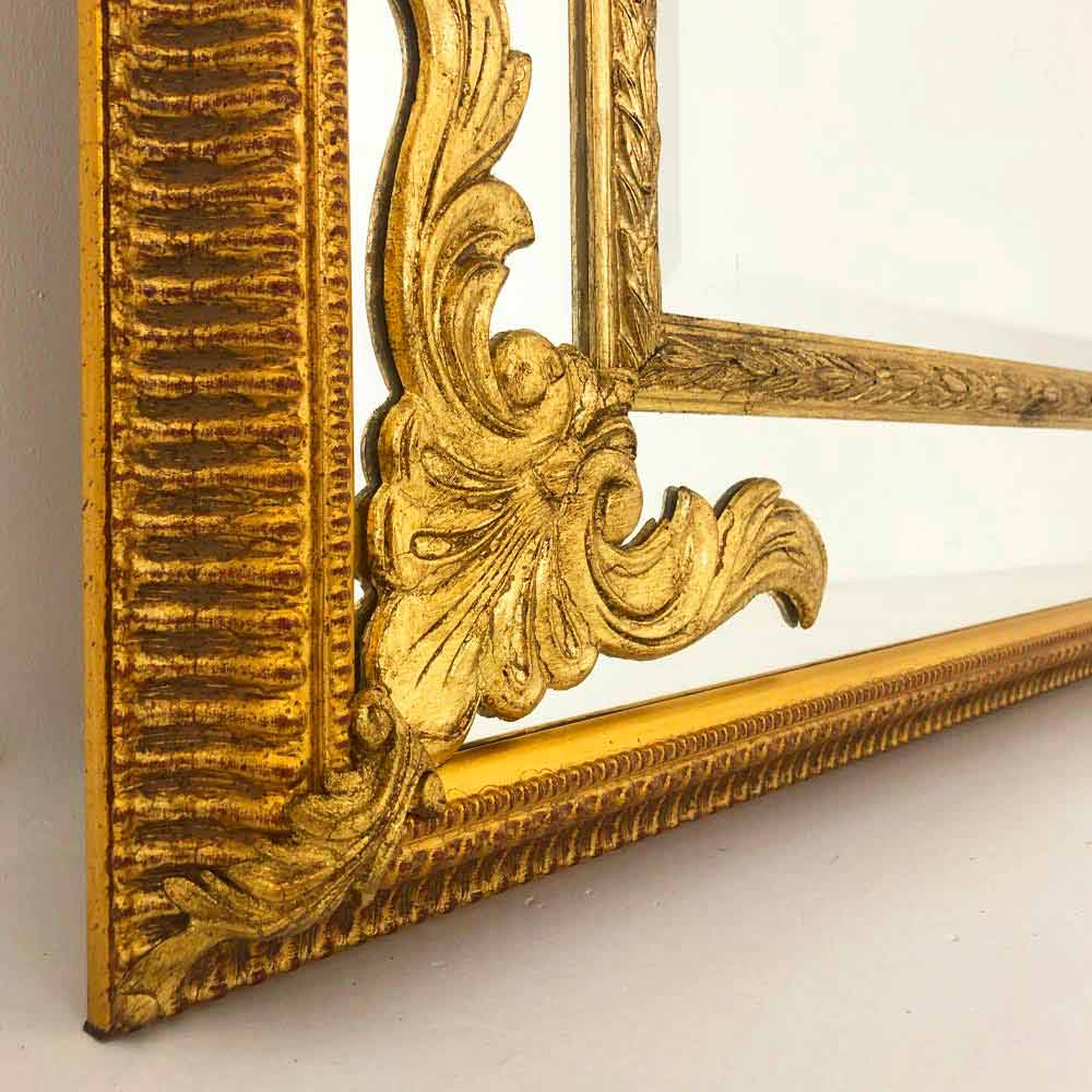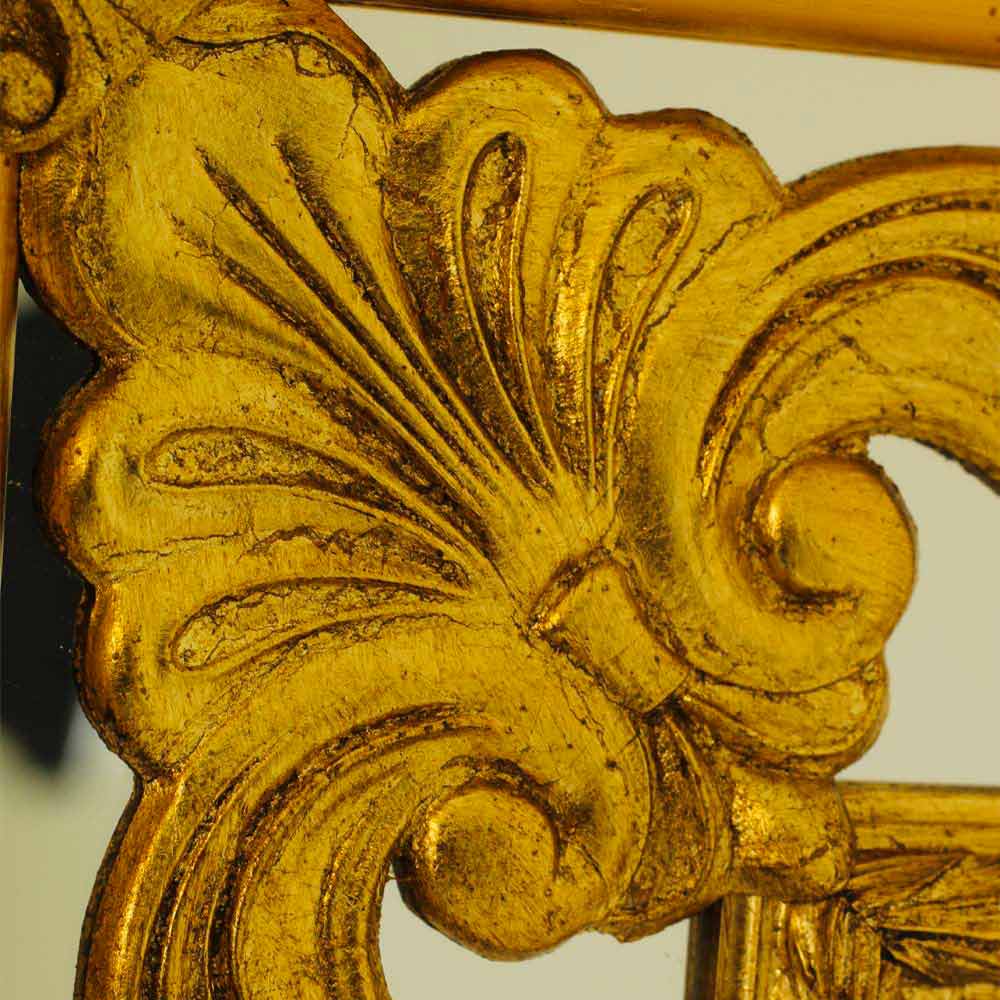 Deze prachtige spiegel is een triomf van klassieke elegantie , een waar juweel voor in huis dat functionaliteit combineert met pure esthetische pracht . Het rijke en ingewikkelde ontwerp weerspiegelt de essentie van luxe, waarbij elke krul en snijwerk glanst met fijn aangebracht verguldsel, wat teruggrijpt op de weelde van historische Italiaanse huizen.