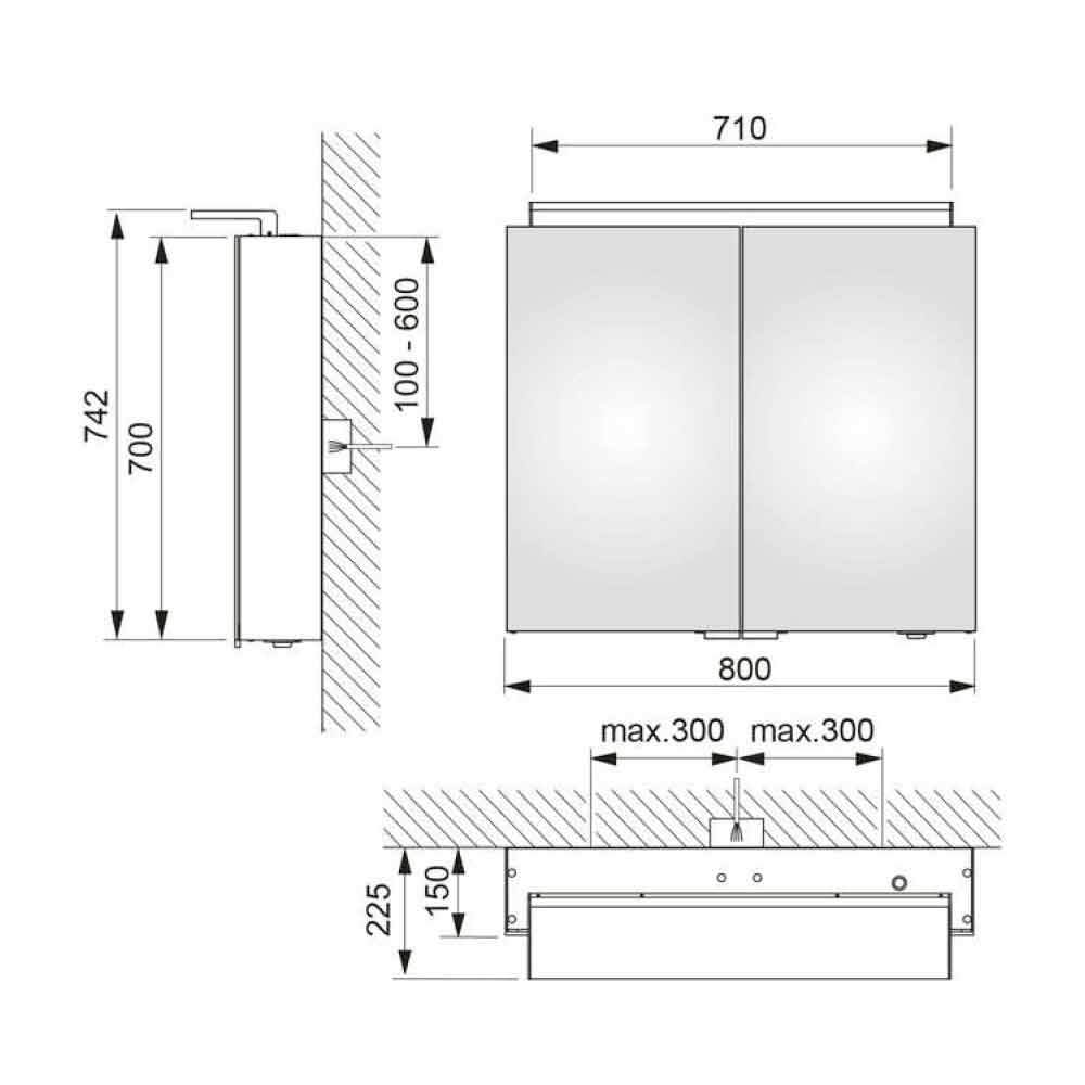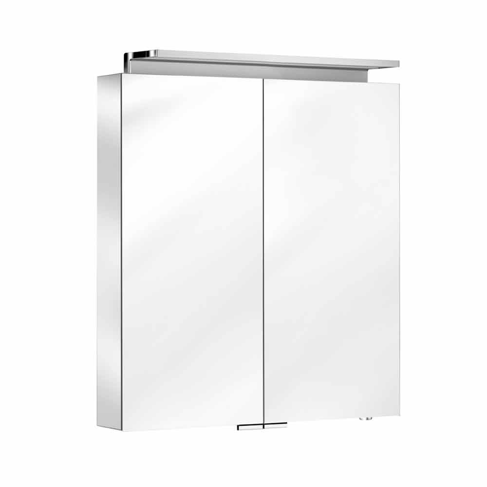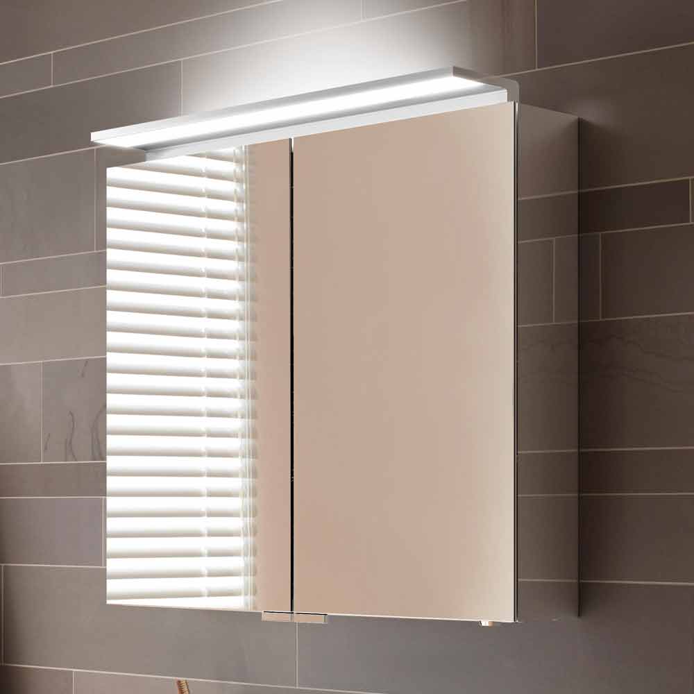 Containerspiegel met 2 spiegeldeuren (ook intern) en zijspiegels voorzien van LED verlichting.