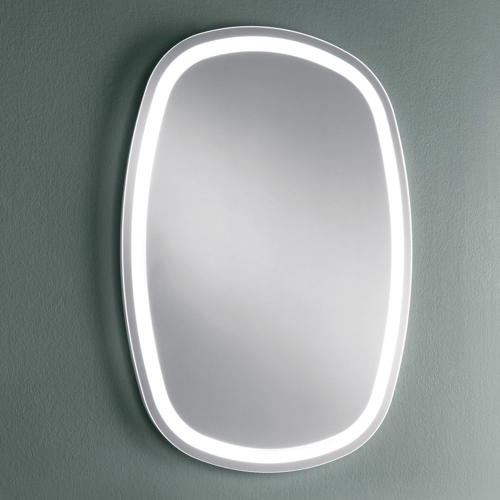 Wandspiegel voor badkamer met een gevormd design met geïntegreerde LED-verlichting, made in Italy kwaliteit.