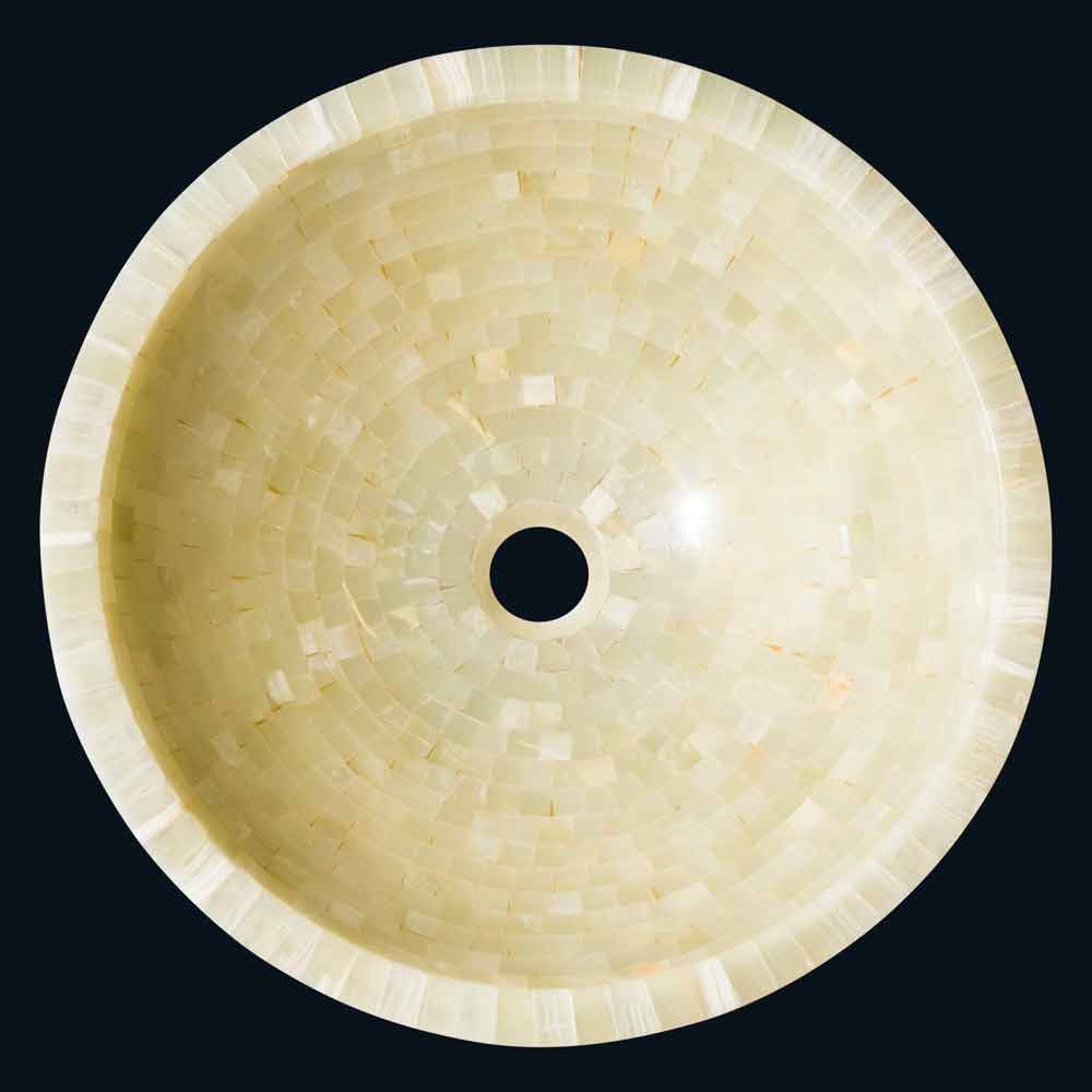 Aanrecht ronde wastafel in honing onyx steen Kilian
