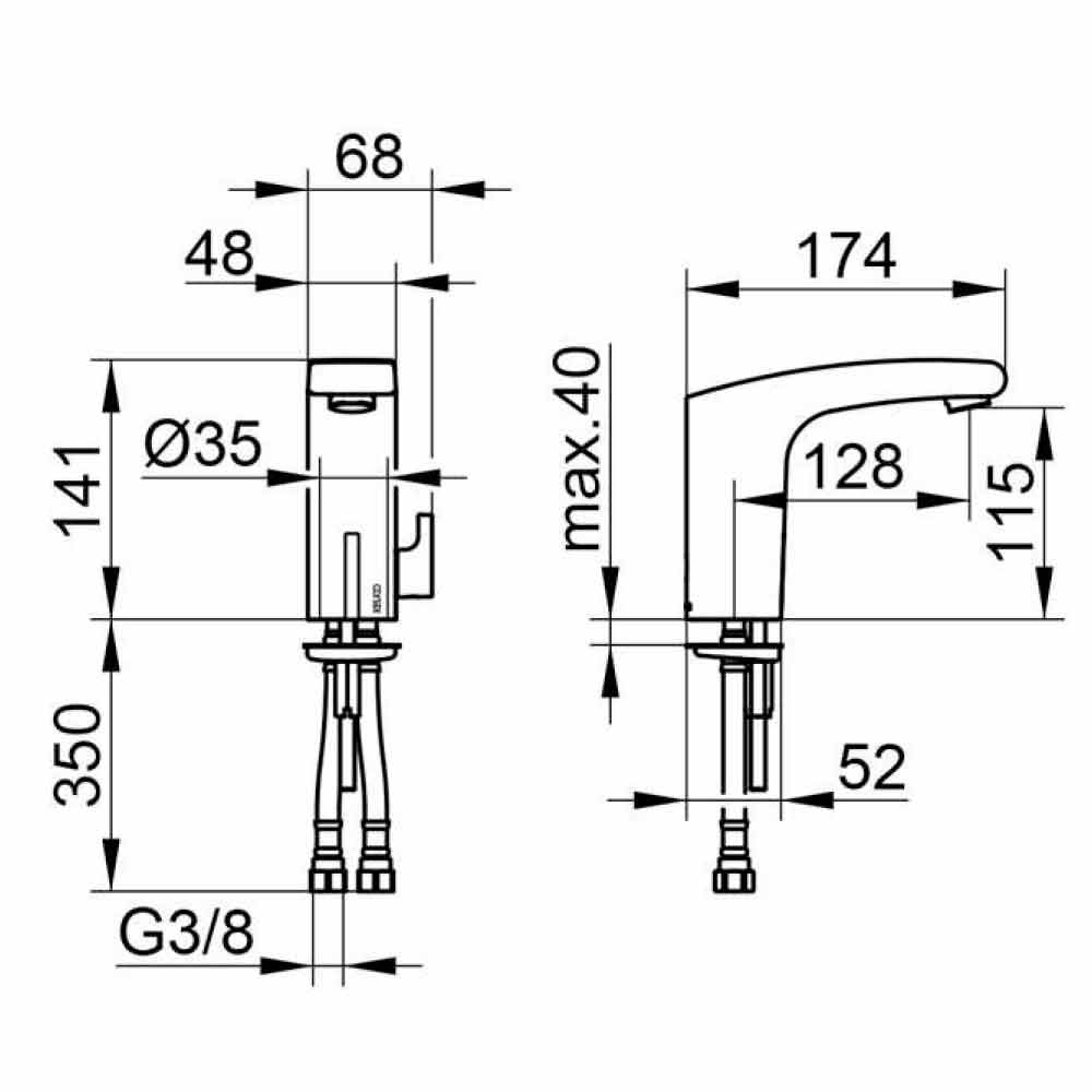 Moderne badkamer wastafel kraan gemaakt van messing met verchroomde afwerking en uitgerust met een praktische infrarood sensor.