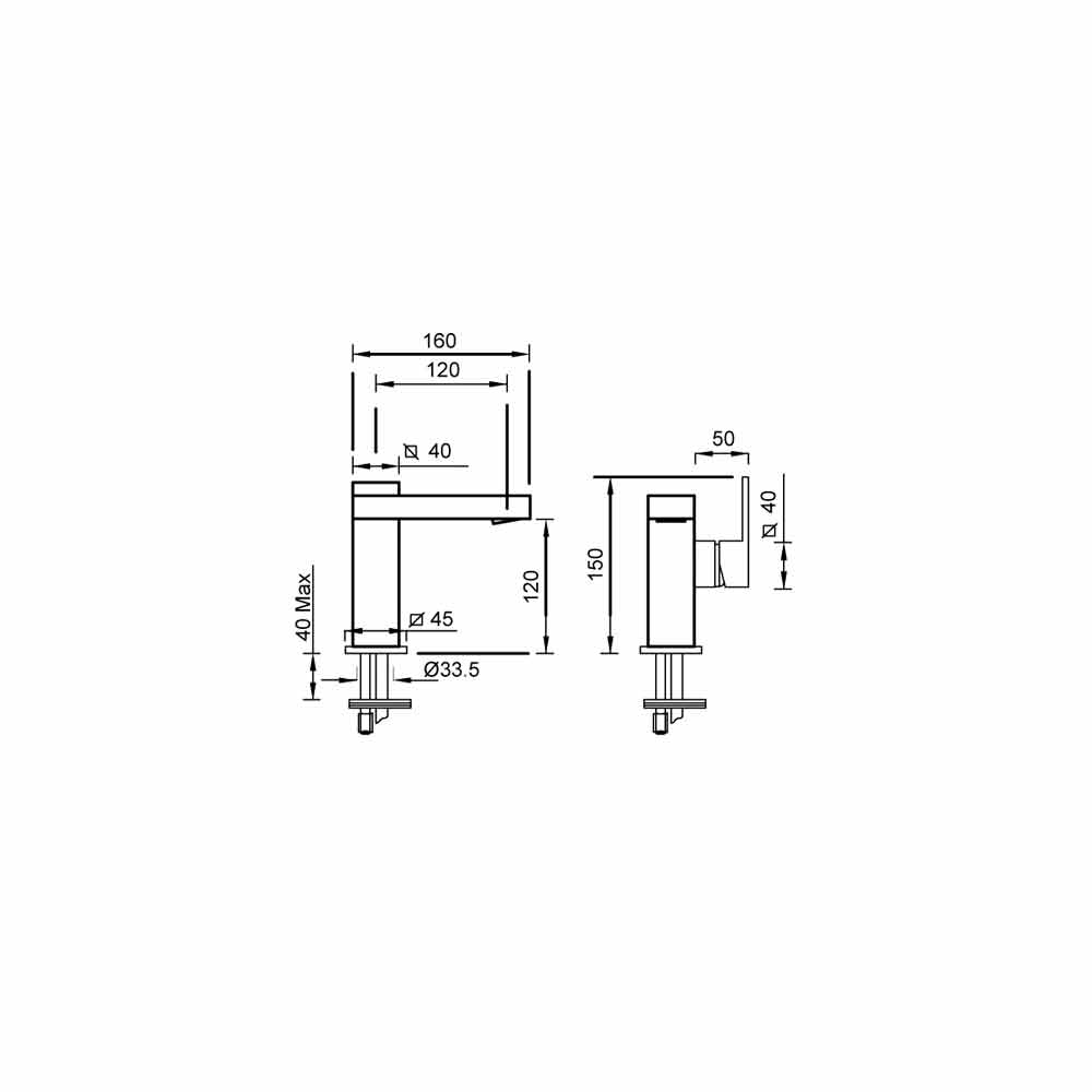 Wastafelmengkraan met zijhendel zonder waste in messing Made in Italy.