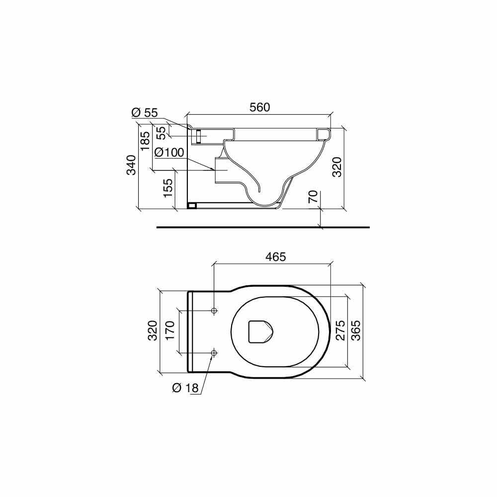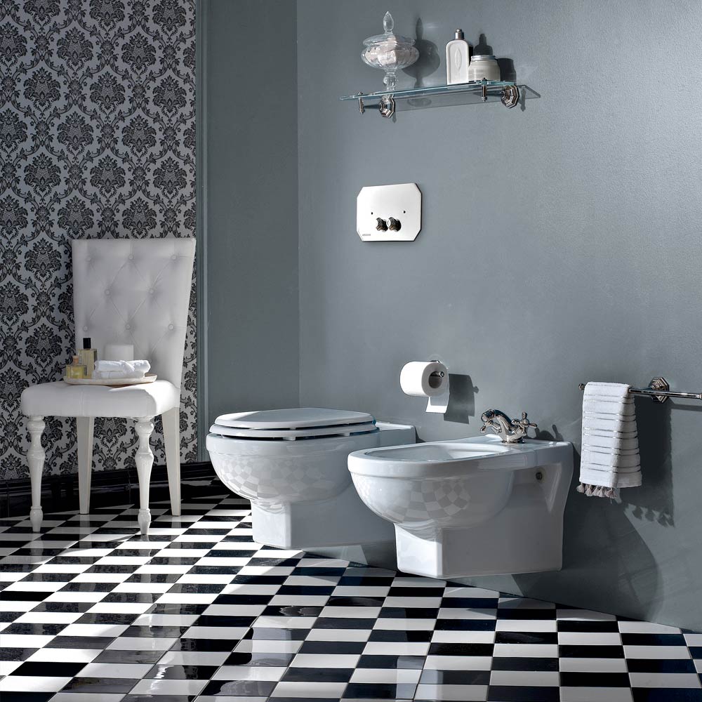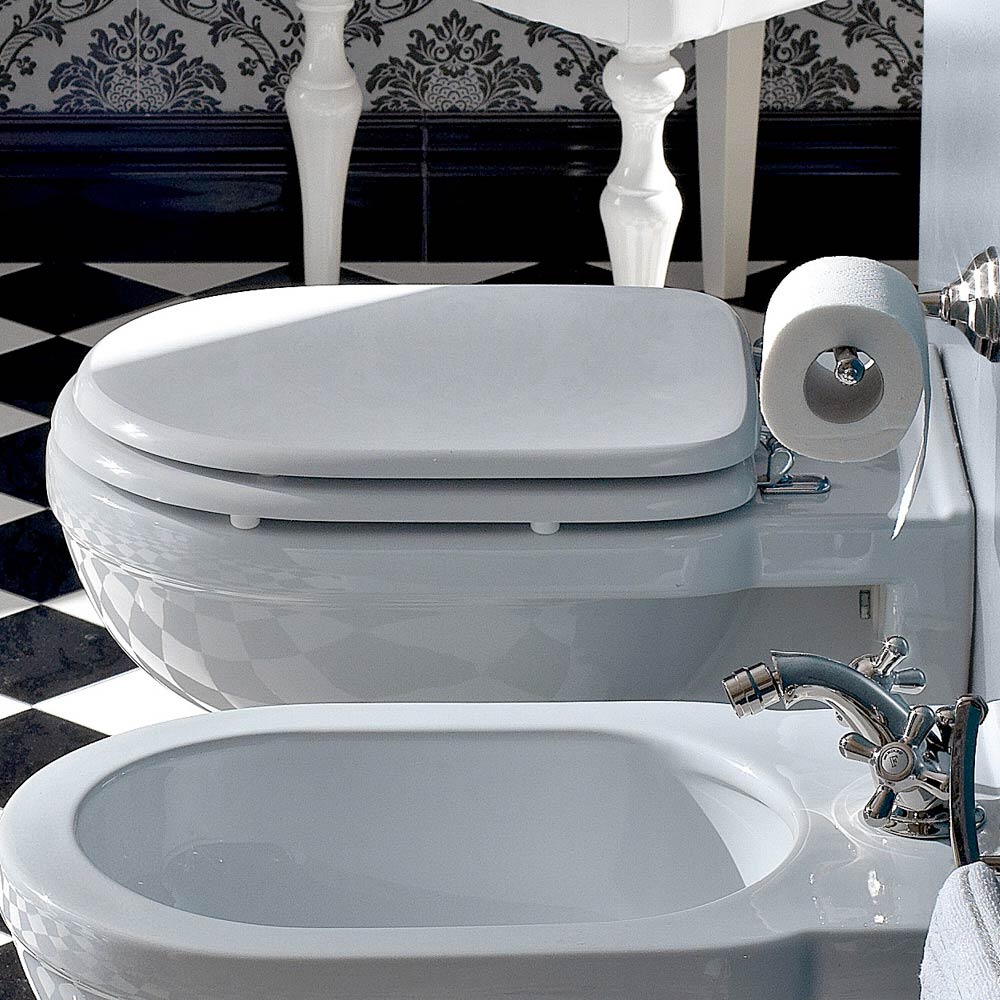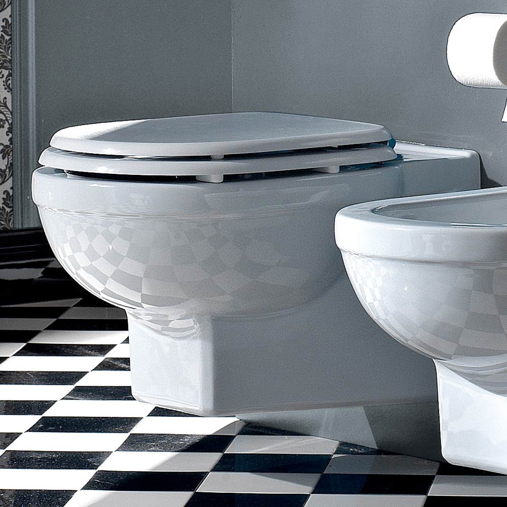 Klassieke wc-ophanging in wit keramiek gemaakt in Italië.