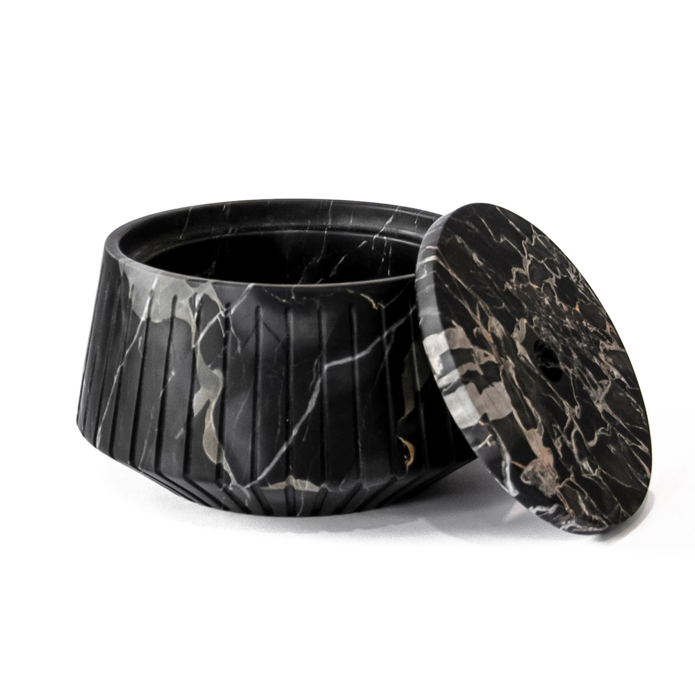 Gestreepte objecthouder in wit Carrara-marmer of zwart Portoro-design gemaakt in Italië.