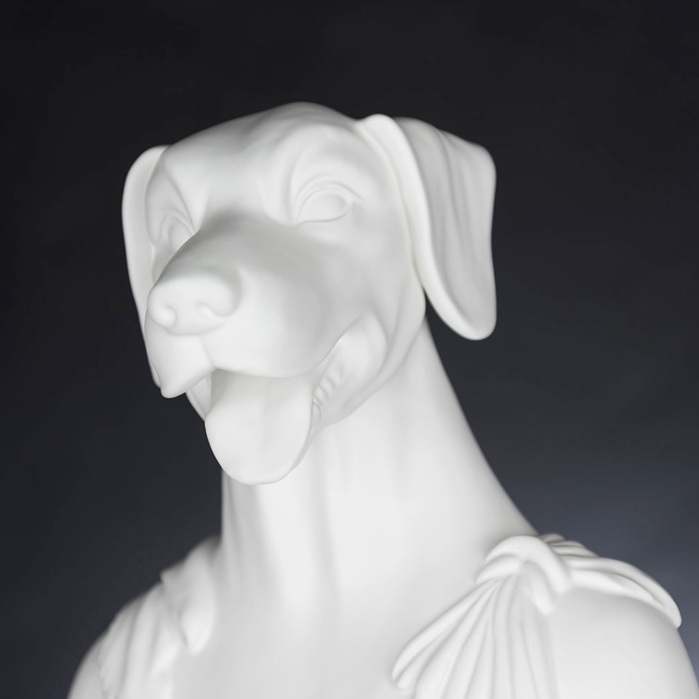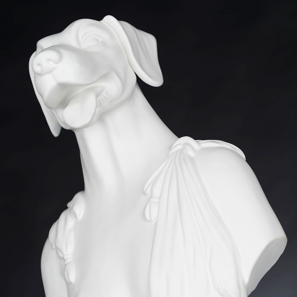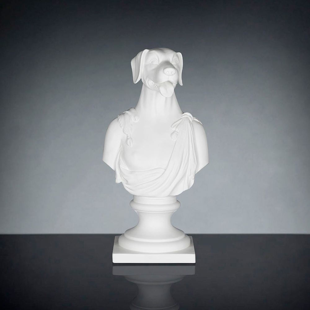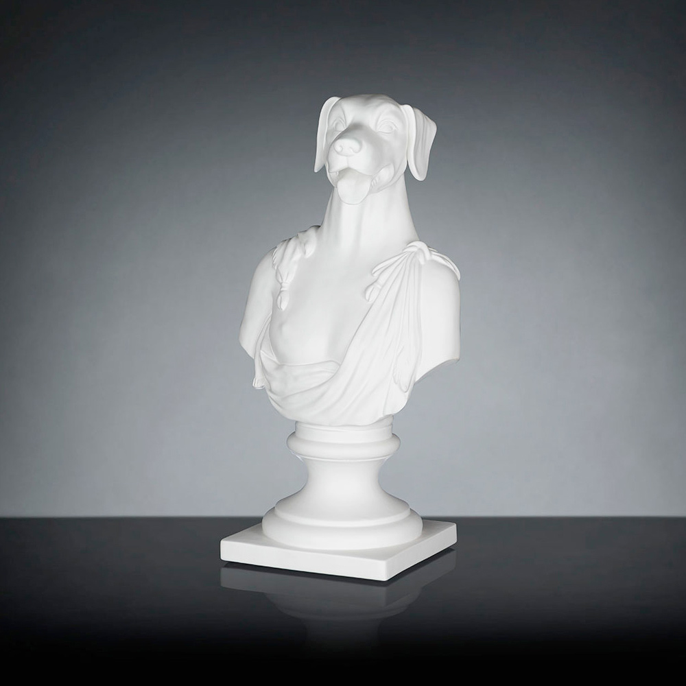 Decoratieve keramische sculptuur handgemaakt door Italiaanse ambachtslieden met afbeelding van Argos, de hond van Ulysses.