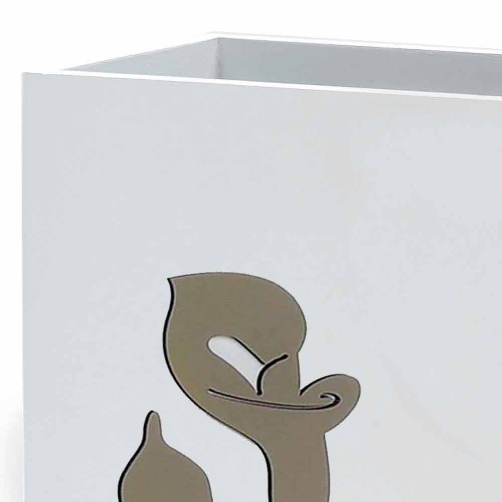 Moderne paraplubak in wit hout met duifgrijze decoratieve applicatie, rechthoekig vloerdesign made in Italy.
