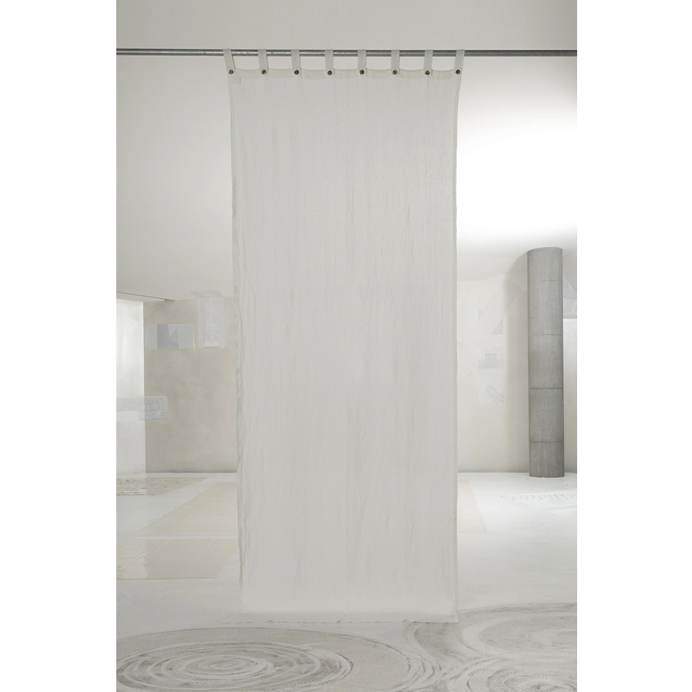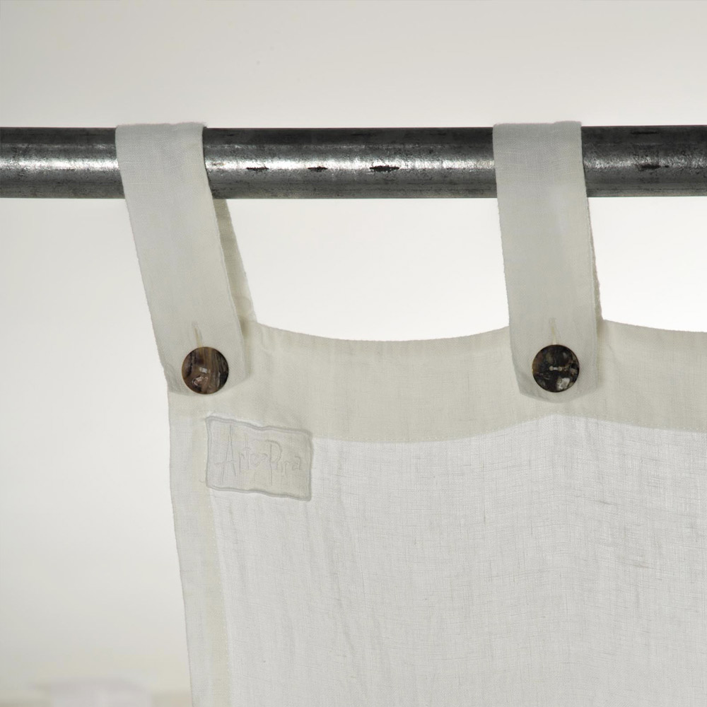 Wit dik linnen gordijn met parelmoeren knoopsluiting, handgemaakte kwaliteit made in Italy.