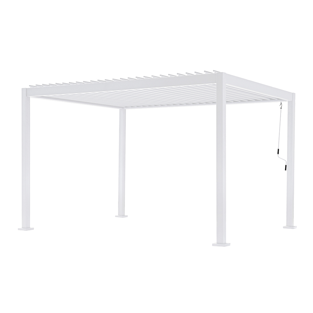 De dakdwarsbalken van 145 x 80 mm en 162 x 28 mm zorgen voor een solide en duurzame constructie, terwijl het verstelbare lamellendak u in staat stelt de licht- en luchtinlaat naar wens aan te passen. Dankzij de externe slinger is het openen eenvoudig en soepel, zodat u op elk moment van de dag de perfecte sfeer kunt creëren.
