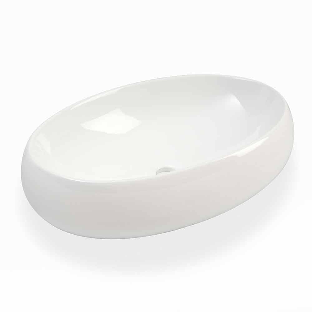 Ovale aanrechtwastafel in moderne stijl, handgemaakt in Italië in glanzend wit keramiek.