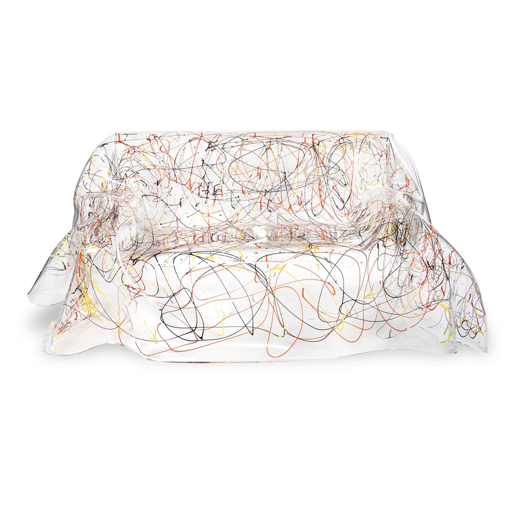 Moderne designbank in wit of veelkleurig plexiglas, made in Italy.