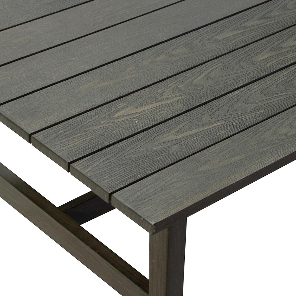 De lage tafel contrasteert mooi met het rotan frame, waardoor een moderne look ontstaat die gemakkelijk te integreren is met elke stijl van buitenmeubilair.
