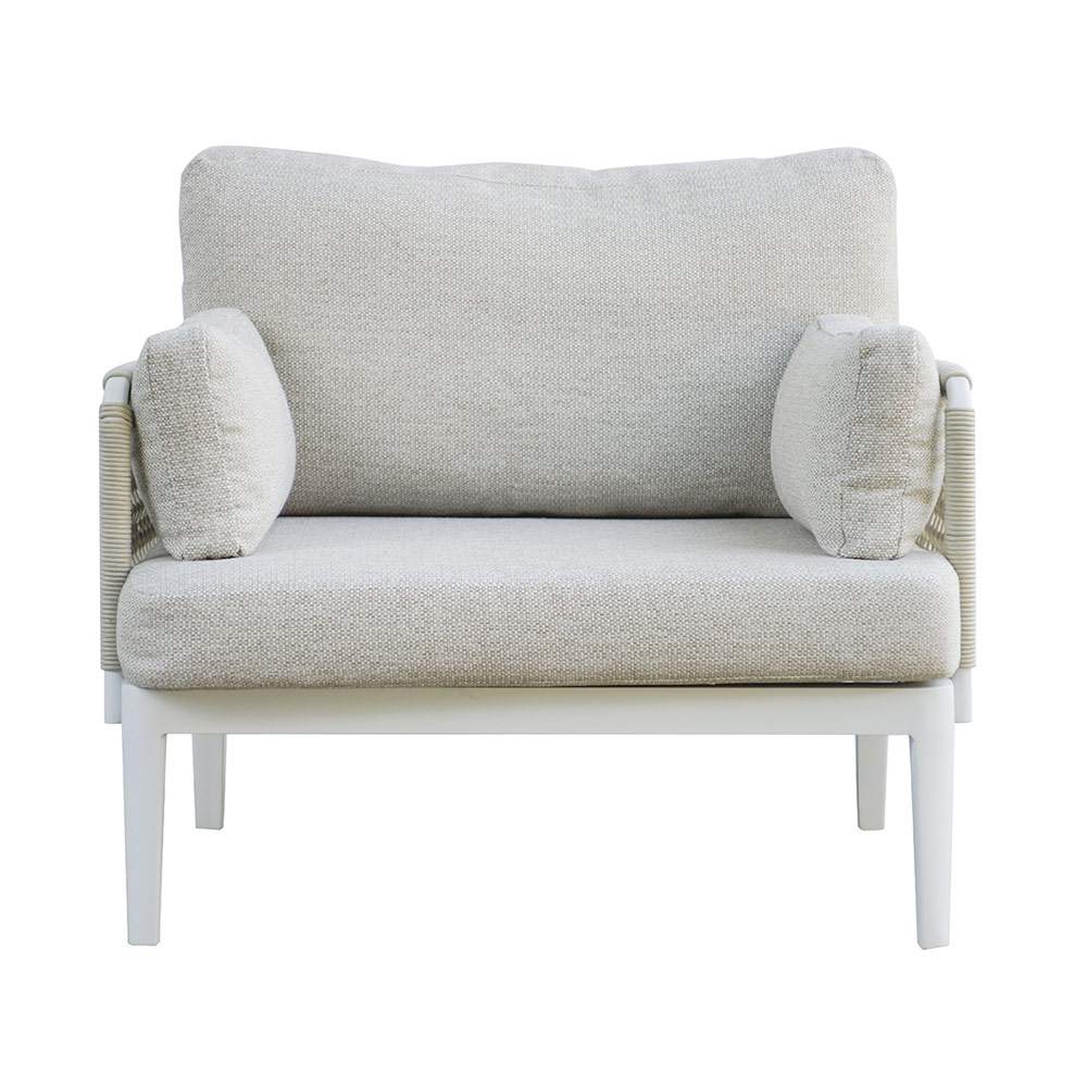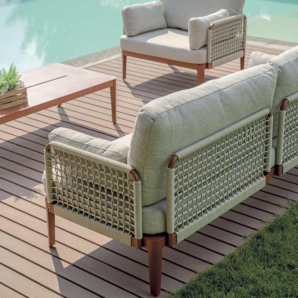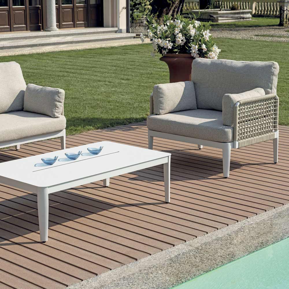 Deze tuinlounge è de ideale oplossing voor wie op zoek is naar een perfecte balans tussen elegantie en comfort. Bestaande uit fauteuils en bank met gestoffeerde kussens en een stevige salontafel, is deze set è de ideale aanvulling om te genieten van ontspannende momenten in de buitenlucht. Het moderne ontwerp en de strakke lijnen passen perfect in elke buitenomgeving, van ruime patio's tot gezellige tuinen.