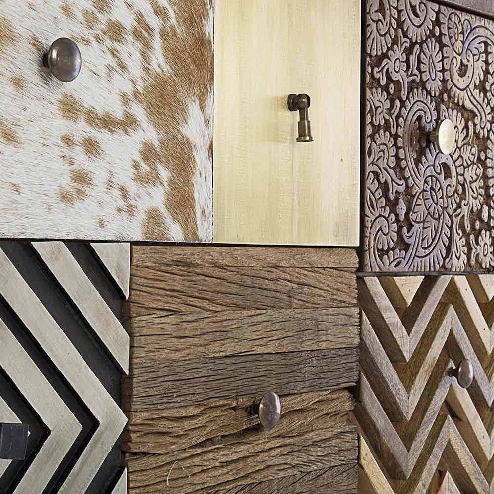 De voorkant van de deuren is gemaakt van gerecycled mango- en acaciahout met een verfafwerking op waterbasis.