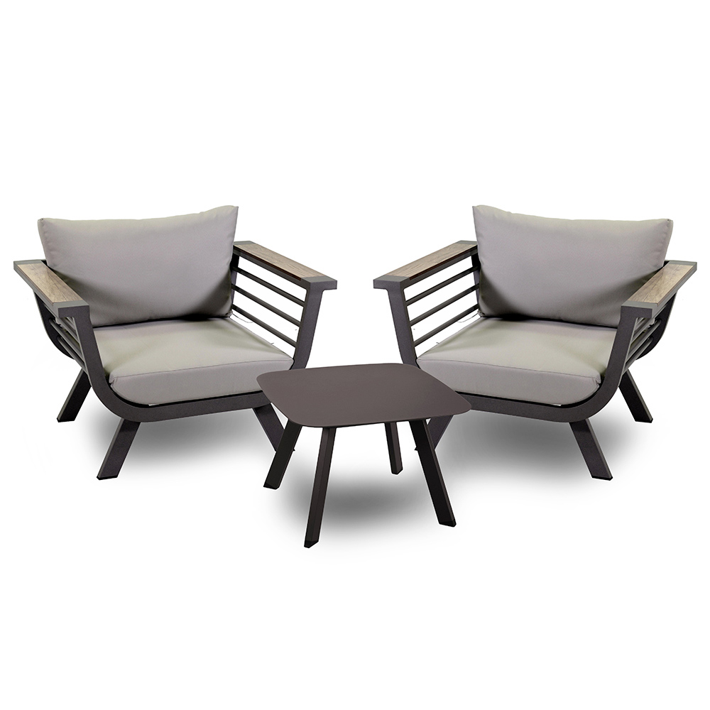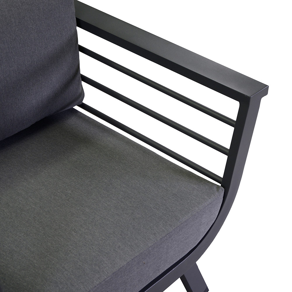 Het eigentijdse ontwerp van de stoelen met elegante armleuningen en de stevigheid van het aluminium zorgen voor duurzaamheid en stabiliteit , waardoor deze lounge een ideale keuze is om te genieten van talloze momenten in de buitenlucht.