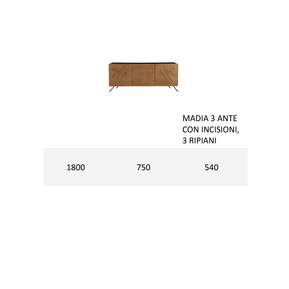 Woonkamer dressoir met mdf kuip en massief houten rugleuning 2 of 3 deuren Made in Italy.