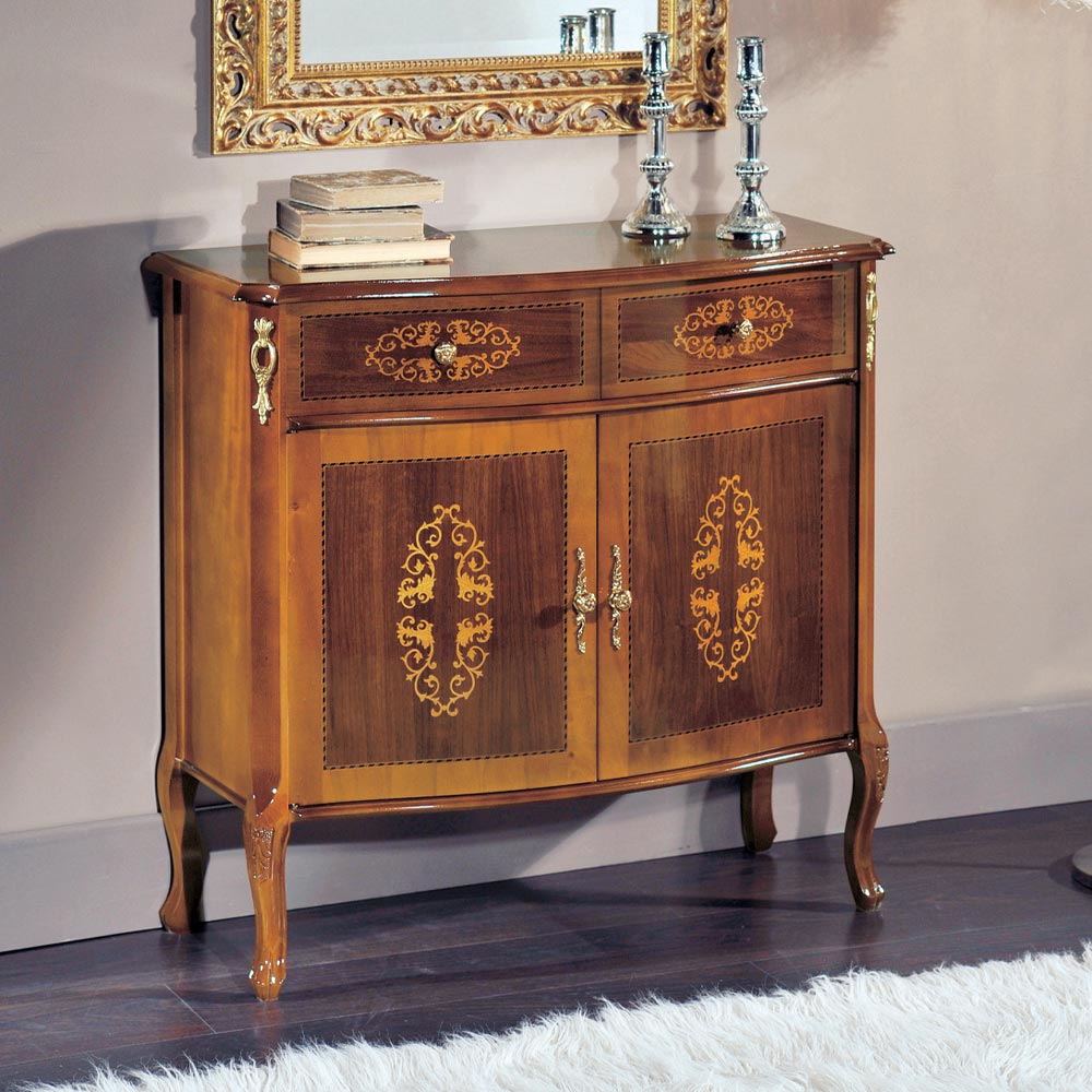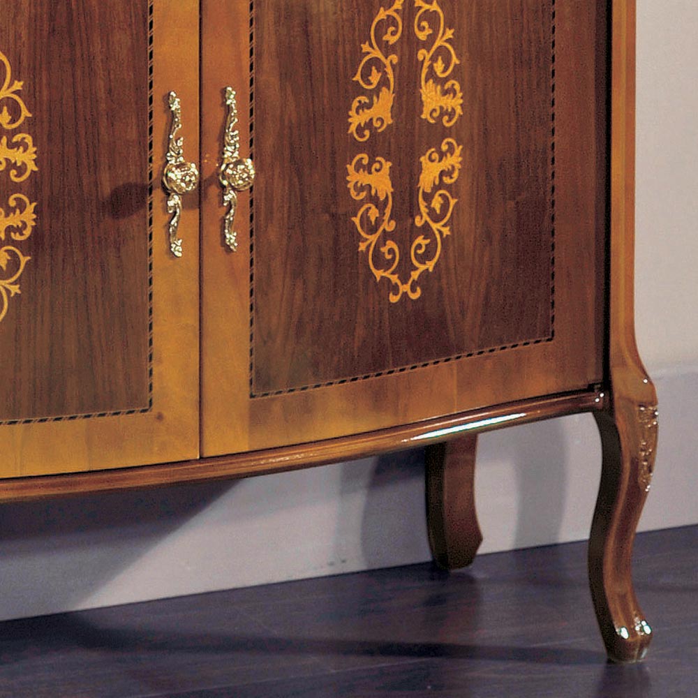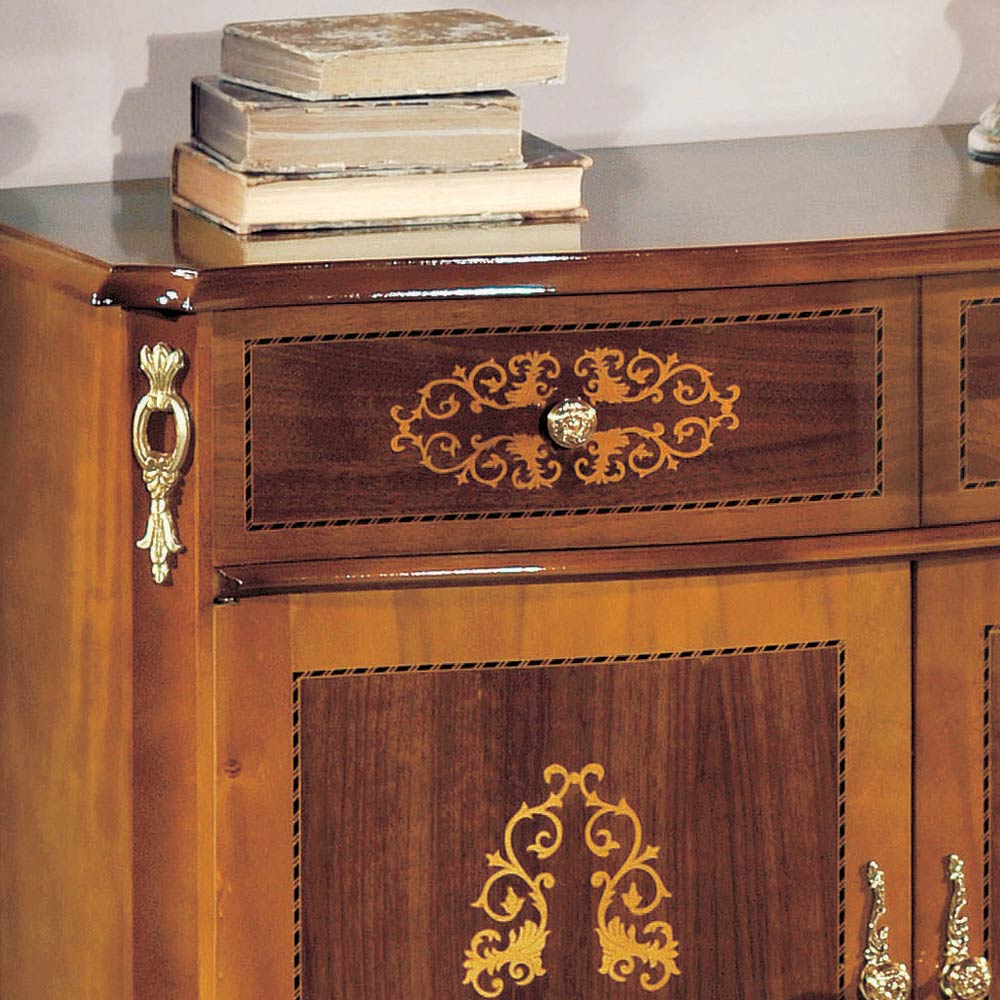 Woonkamer dressoir in walnoot of wit hout met Made in Italy inlegwerk.