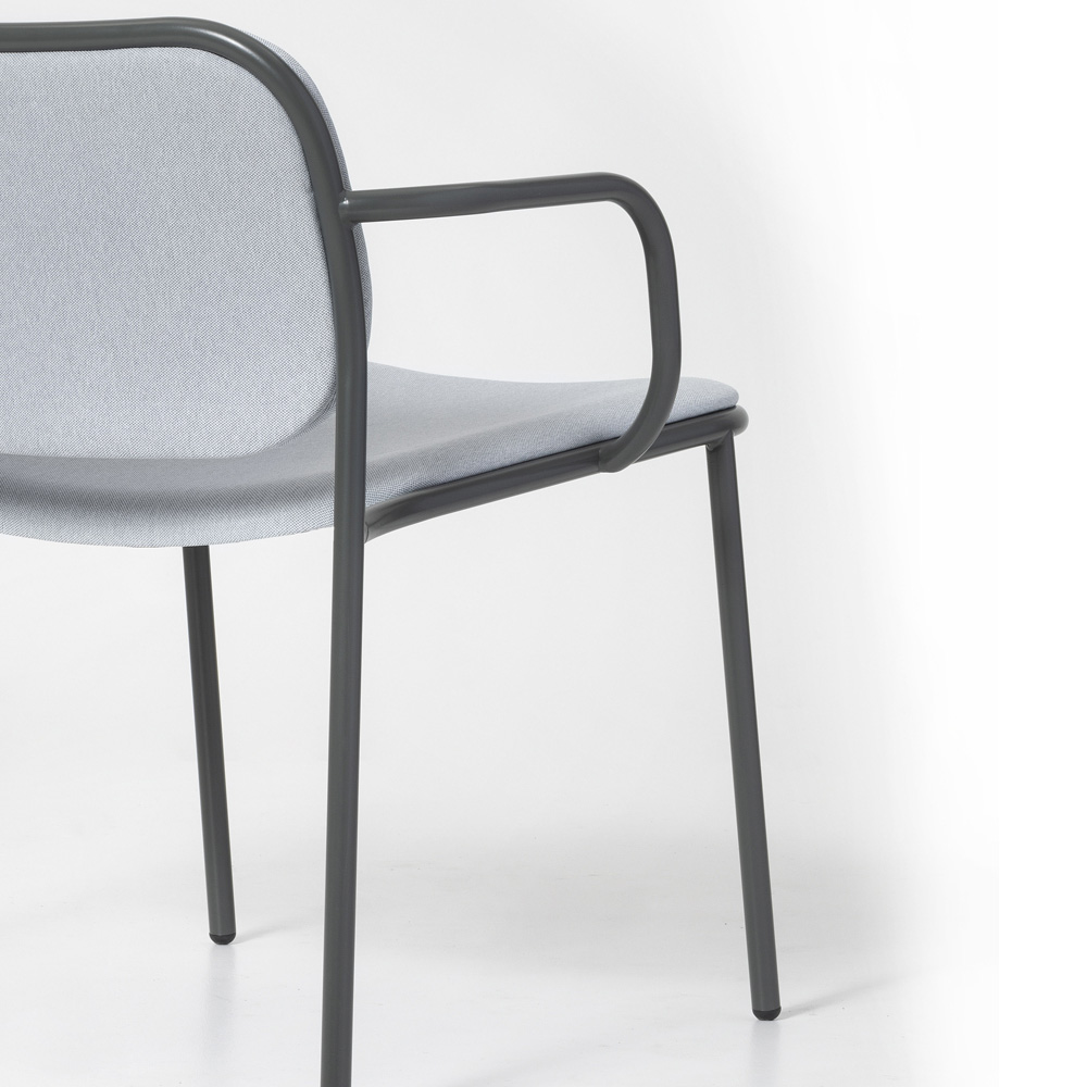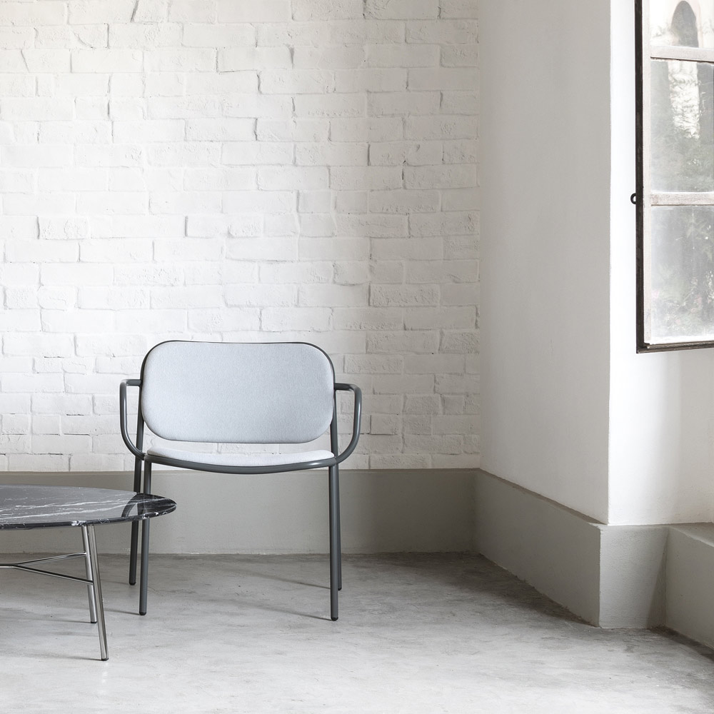 persoonlijkheid en materialiteit van de loungestoel. De mogelijkheid om te stapelen benadrukt ook de functionele kant en maakt het ook een perfecte oplossing voor contractomgevingen zoals bars, restaurants en loungeruimtes in hotels waar het essentieel is om ruimtes te optimaliseren wanneer de fauteuils niet in gebruik zijn.