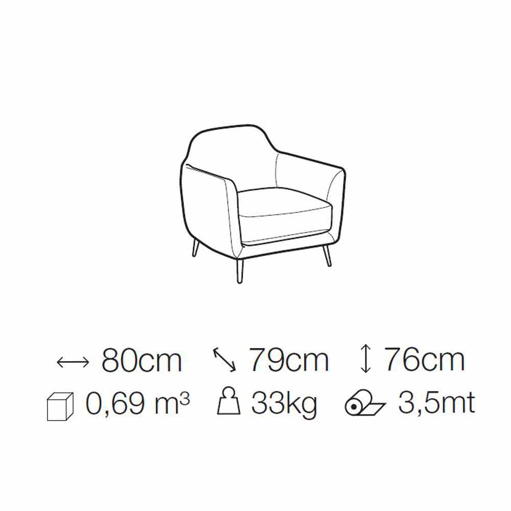 Woonkamer fauteuil in stof met metalen poten Made in Italy, prima.