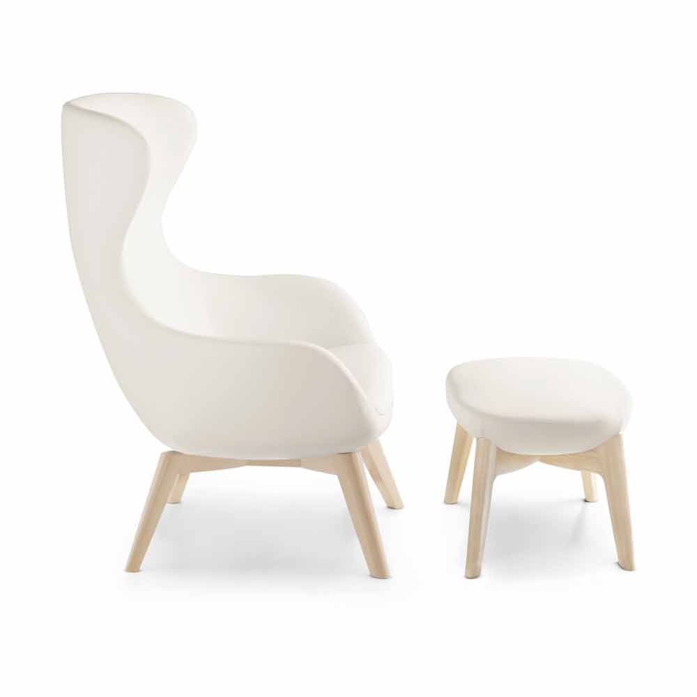 functioneel en verfijnd resultaat, mede dankzij de aanwezigheid van de poef, die bijdraagt aan het bereiken van comfort. zonder gelijke. De houten basis maakt de twee producten af met een