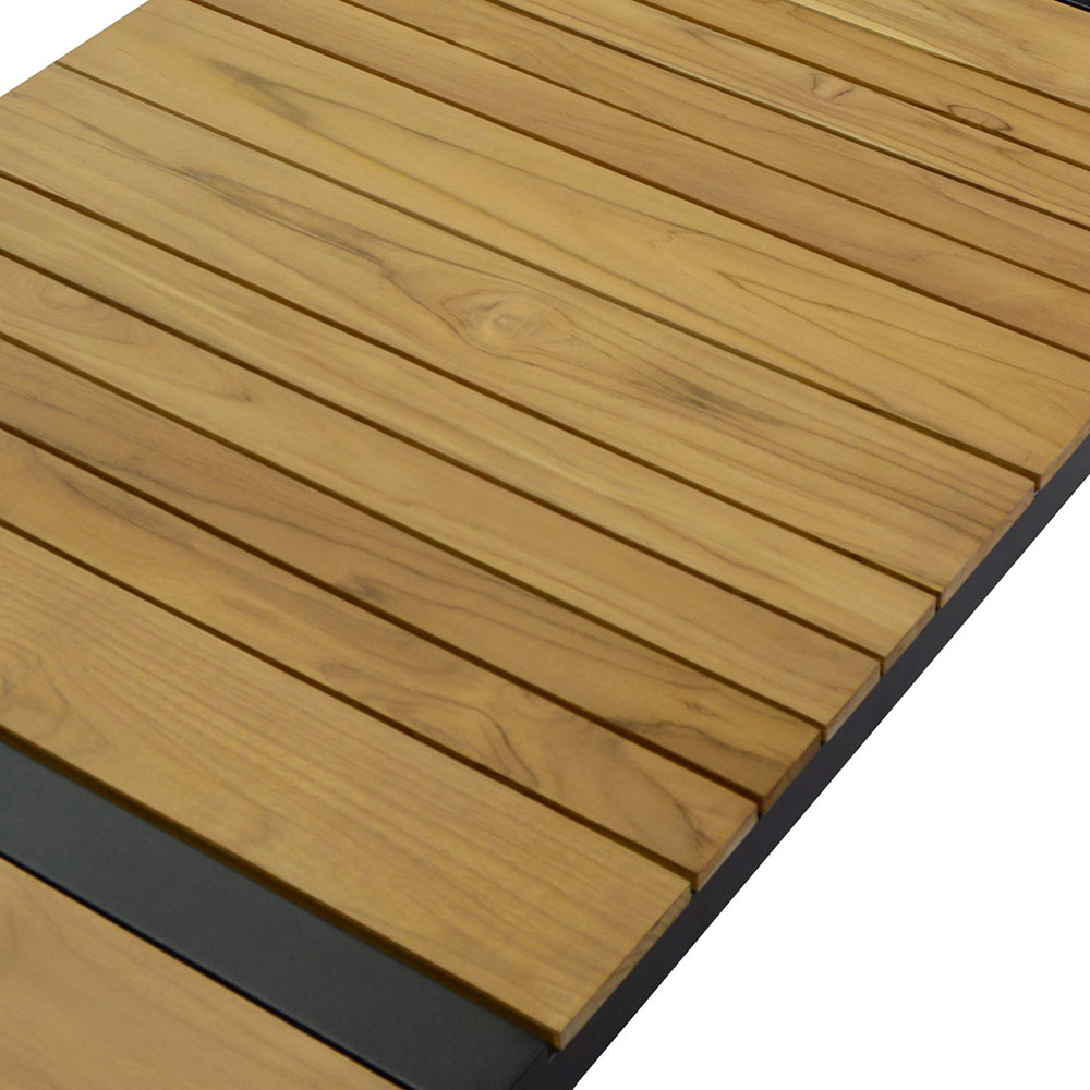 1 salontafel: frame in roestvast aluminium met poedercoating in antraciet en blad in TEAK hout uit Brazilië.