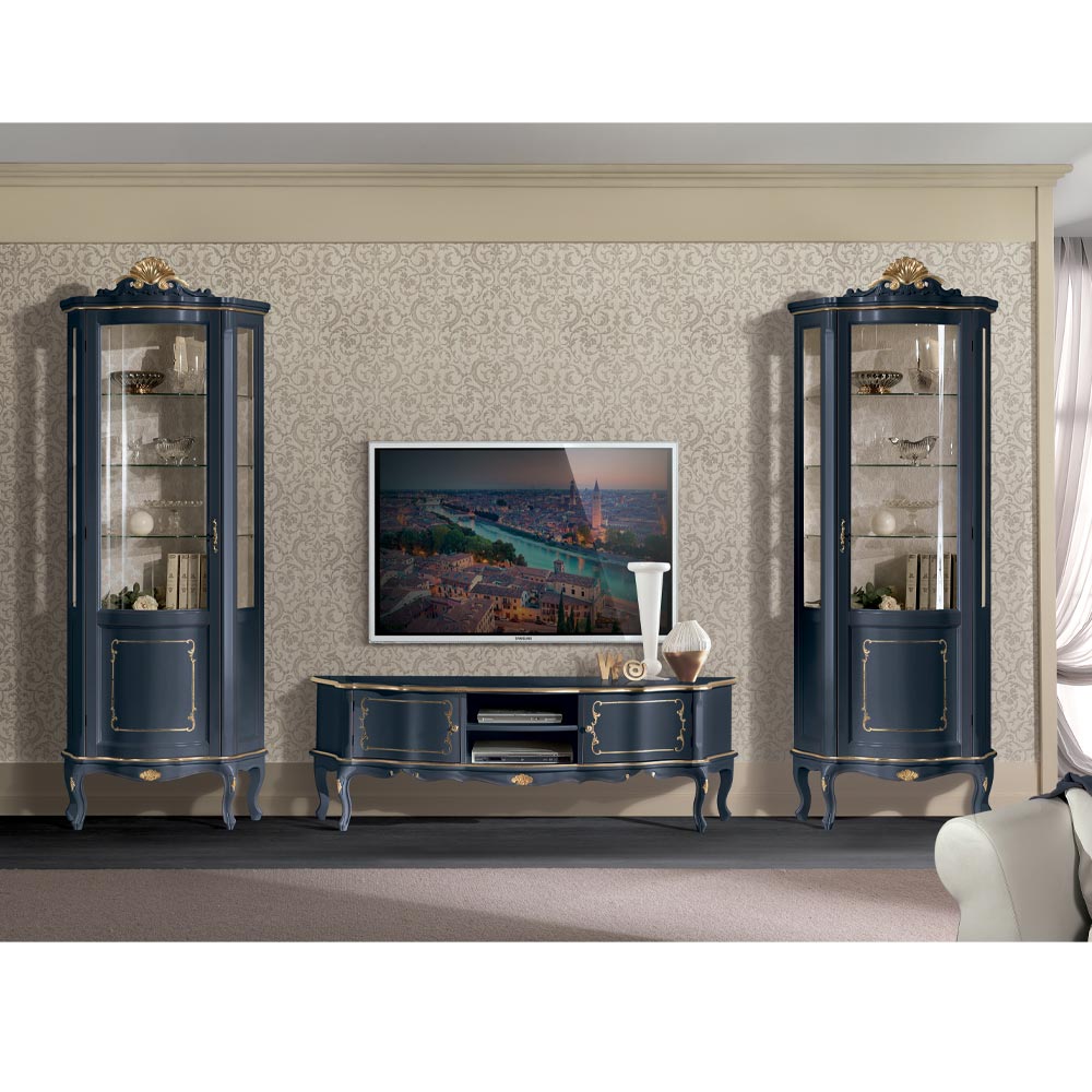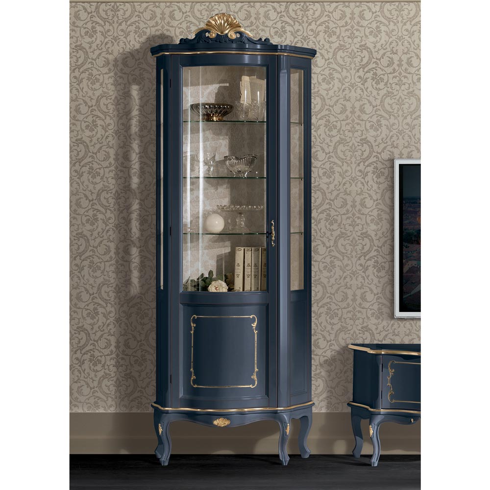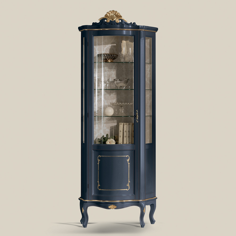 Woonkamer vitrinekast gemaakt van luchtmacht blauw of wit en goud afgewerkt hout met deur, perfect voor het decoreren van elke woonkamer met