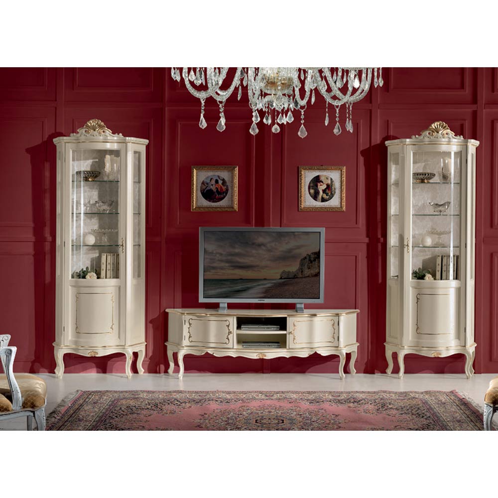 Houten woonkamer vitrinekast met luxe Made in Italy deur.