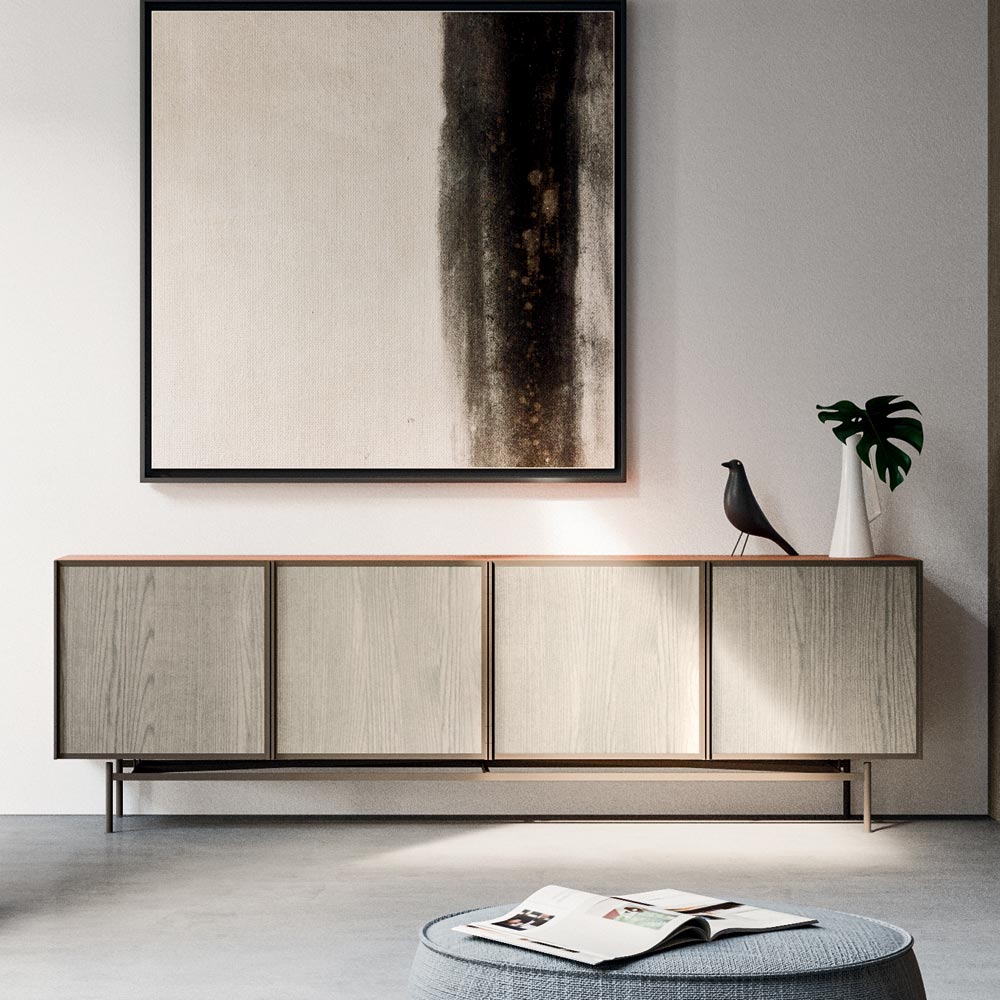 Dressoir met 4 deuren voor woonkamer of entree in ecologisch hout, hoge kwaliteit made in Italy.
