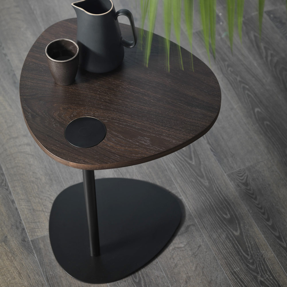 bijzettafel voor de woonkamer is geïnspireerd op de onregelmatige en natuurlijke vormen van de kiezelstenen die door het water zijn gladgestreken. De bijzondere en interessante lijnen verschillen om de kamer te versterken en een vleugje verfijning te geven.