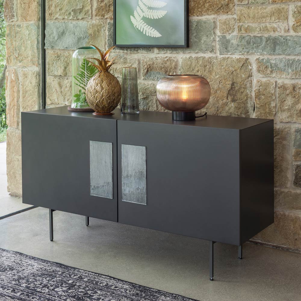 Made in Italy. Het valt op door zijn essentie, door zijn strakke en lineaire ontwerp dat de aandacht trekt van zelfs de meest veeleisende waarnemers. Het dressoir heeft waardevolle details, zoals de glazen inzetstukken op de gelakte deuren die een vleugje elegantie en verfijning toevoegen. Dit dressoir biedt een stijlvolle en functionele opbergoplossing, met interne planken die ruimte bieden voor het ordenen van persoonlijke spullen of huishoudelijke spullen. De glazen inzetstukken vormen een mooi contrast met de gelakte afwerking, waardoor dit meubelstuk een verfijnde keuze is voor elke moderne omgeving.